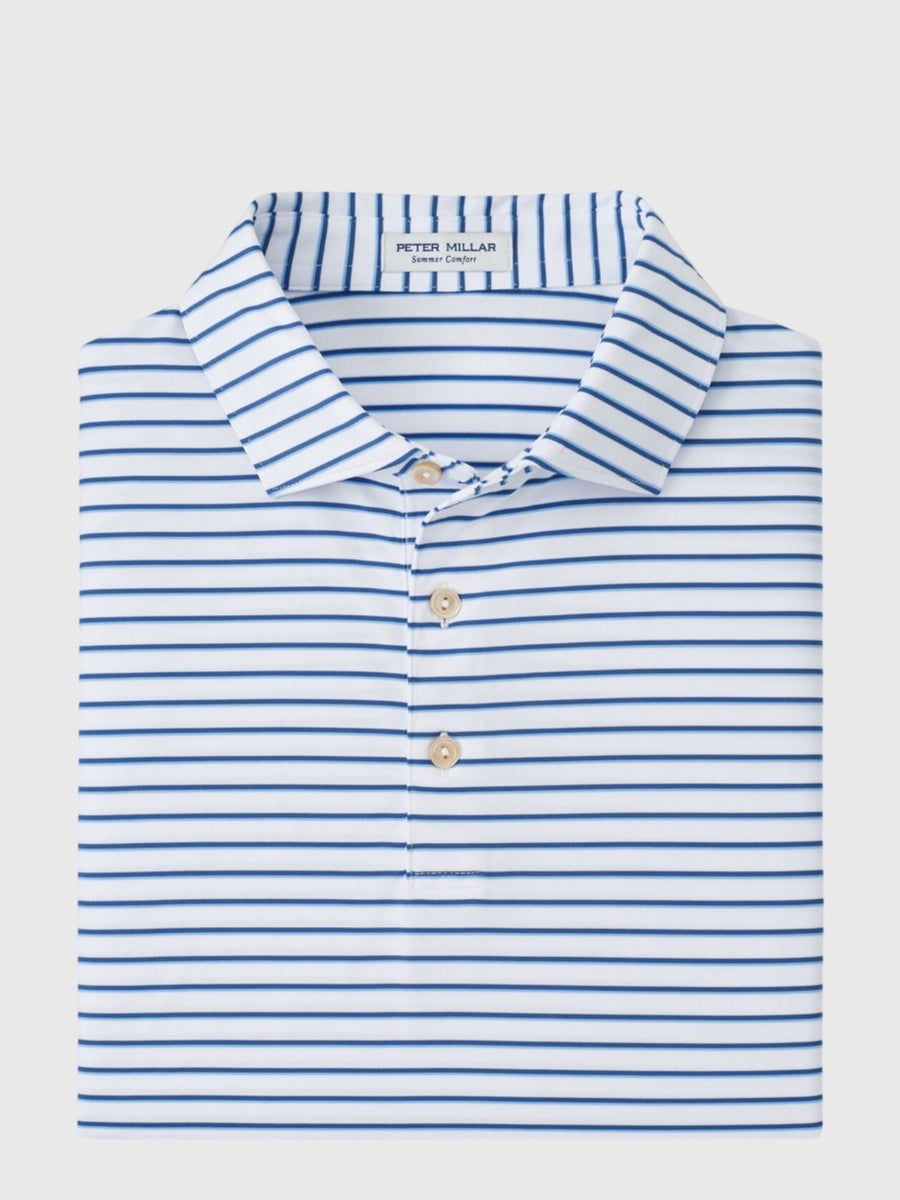 This striped polo is crafted from lightweight fabric equipped with both moisture-wicking and sun protection technology. The four-way stretch ensures exceptional comfort and freedom, making it perfect for any activity.