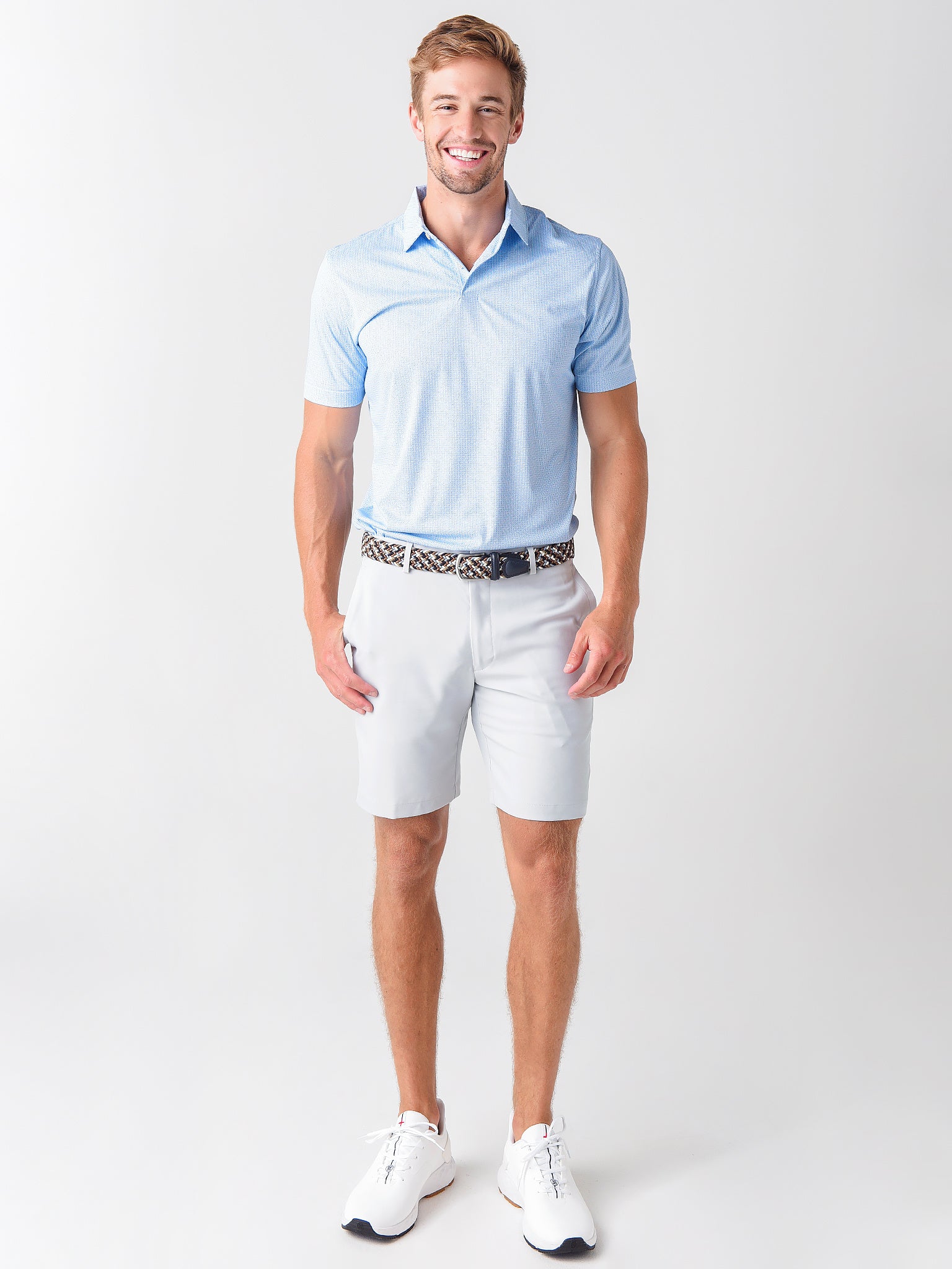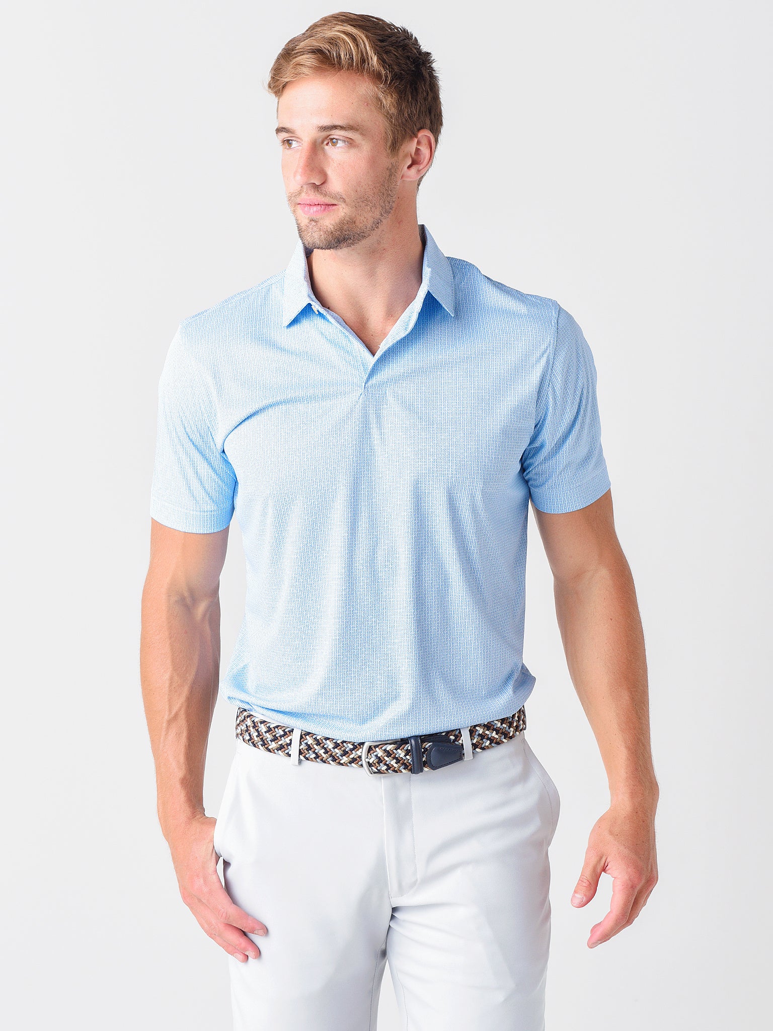 Weighing in at an incredible 3.1 ounces, the Peter Millar Crown Sport Men's Featherweight Printed Geo Performance Polo packs all the performance punch of your favorite golf polo at half the weight of your favorite T-shirt.