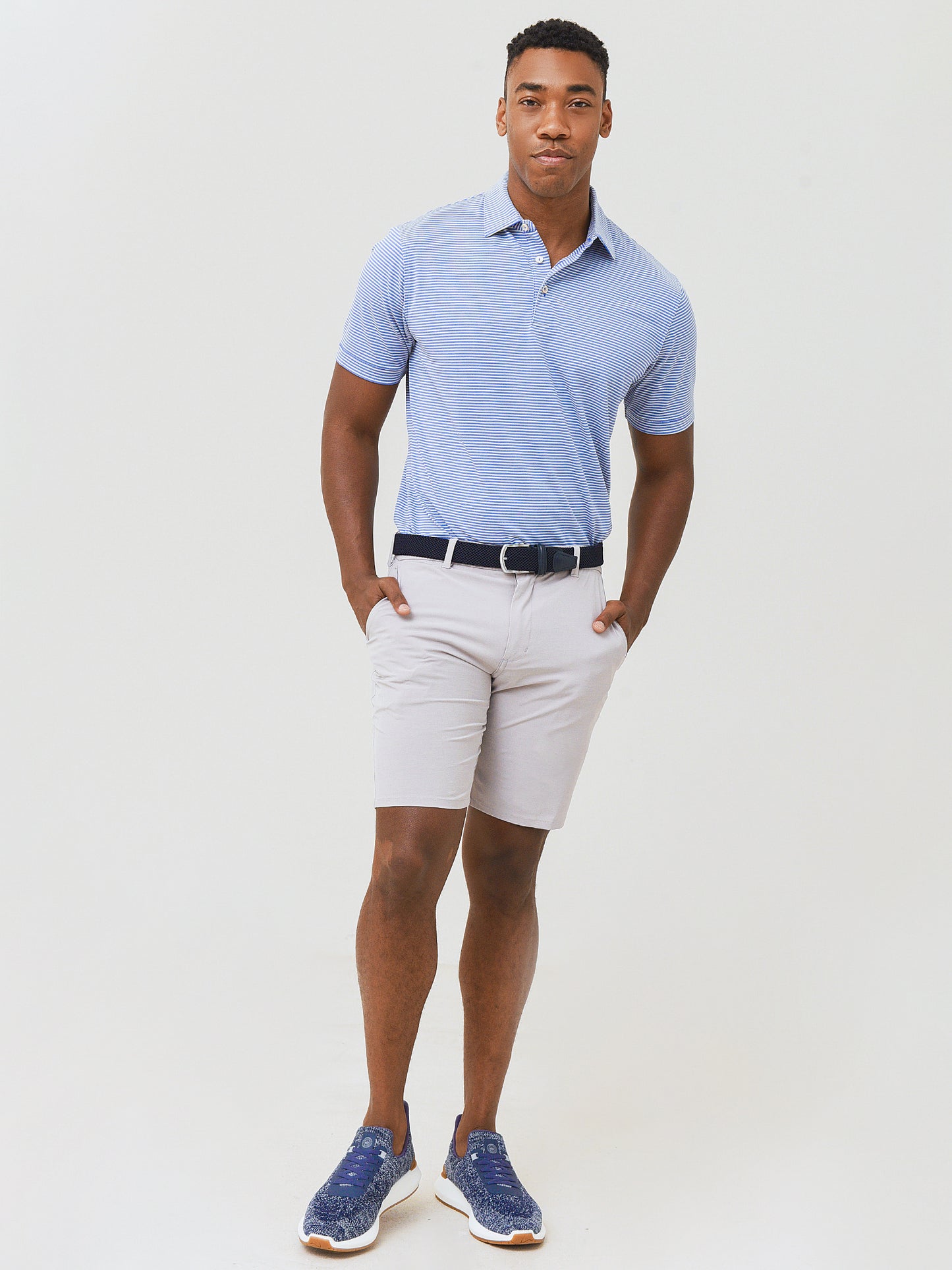 Technical performance polo made from lightweight, antimicrobial fabric.