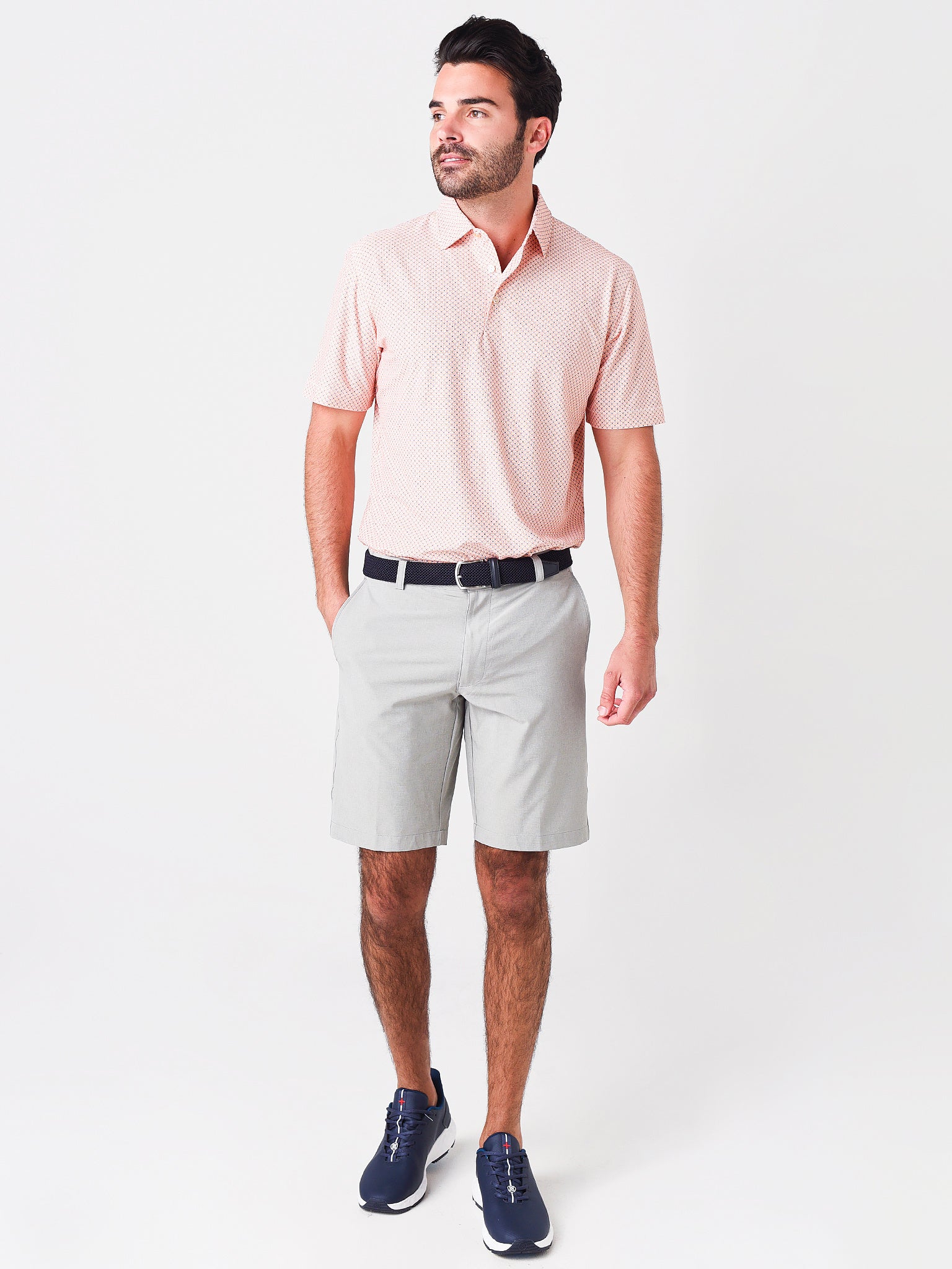 The Peter Millar Crown Sport Men's Roanoke Performance Mesh Polo offers sharp style and technical performance that make it a staple in any wardrobe. It’s constructed using a lightweight, antimicrobial mesh fabric that wicks moisture and stretches four ways for optimal comfort and mobility on and off the course.