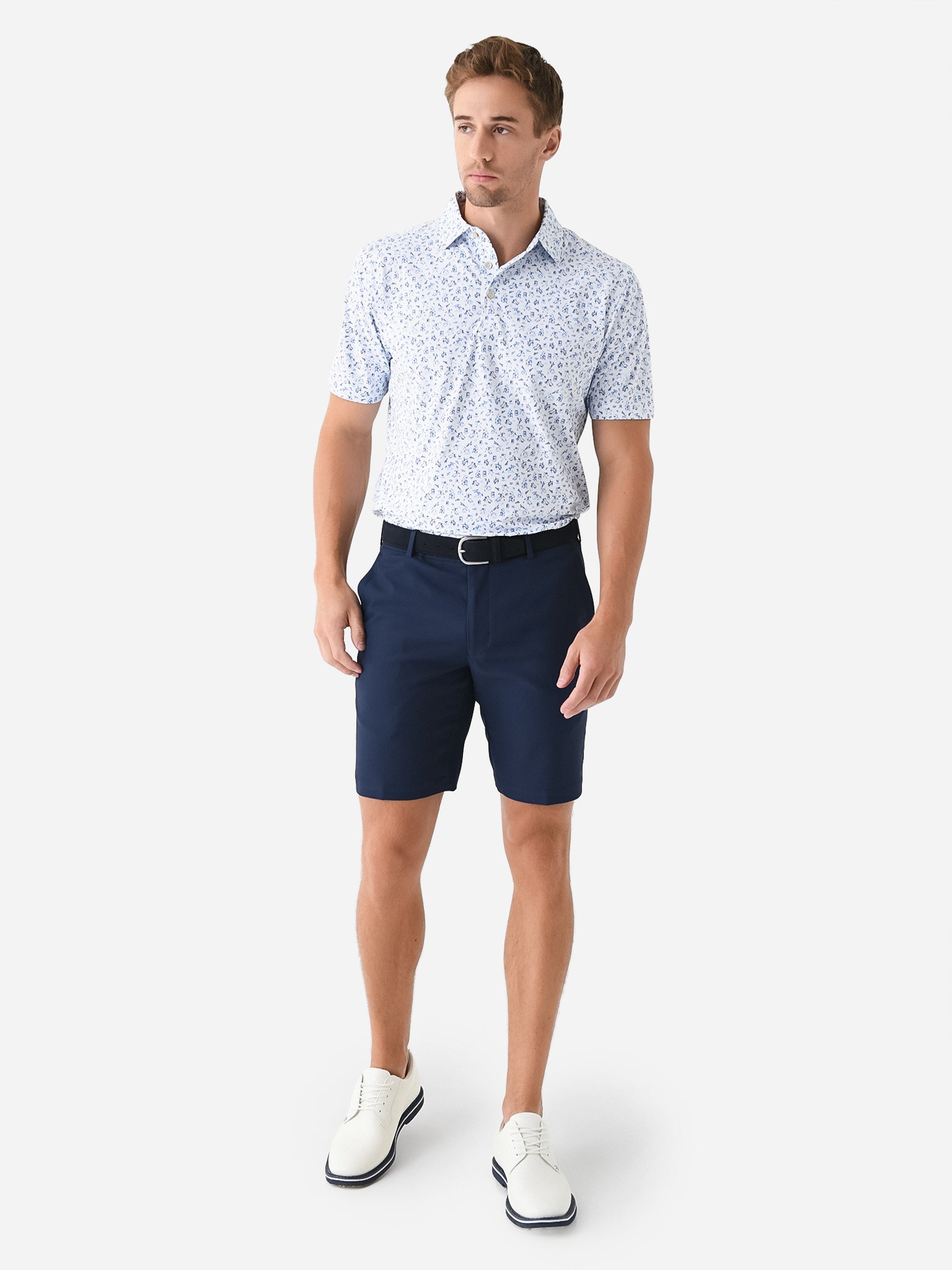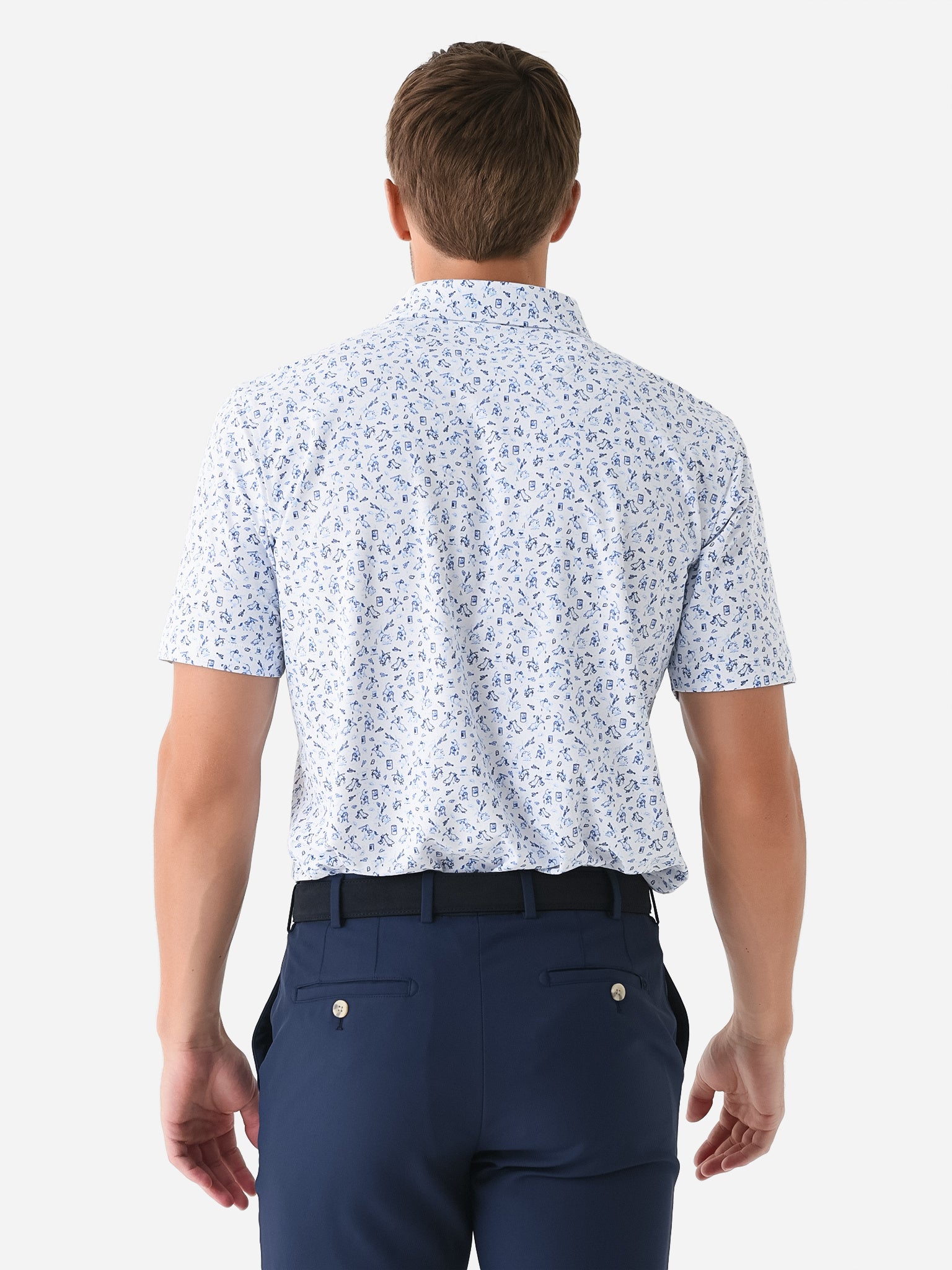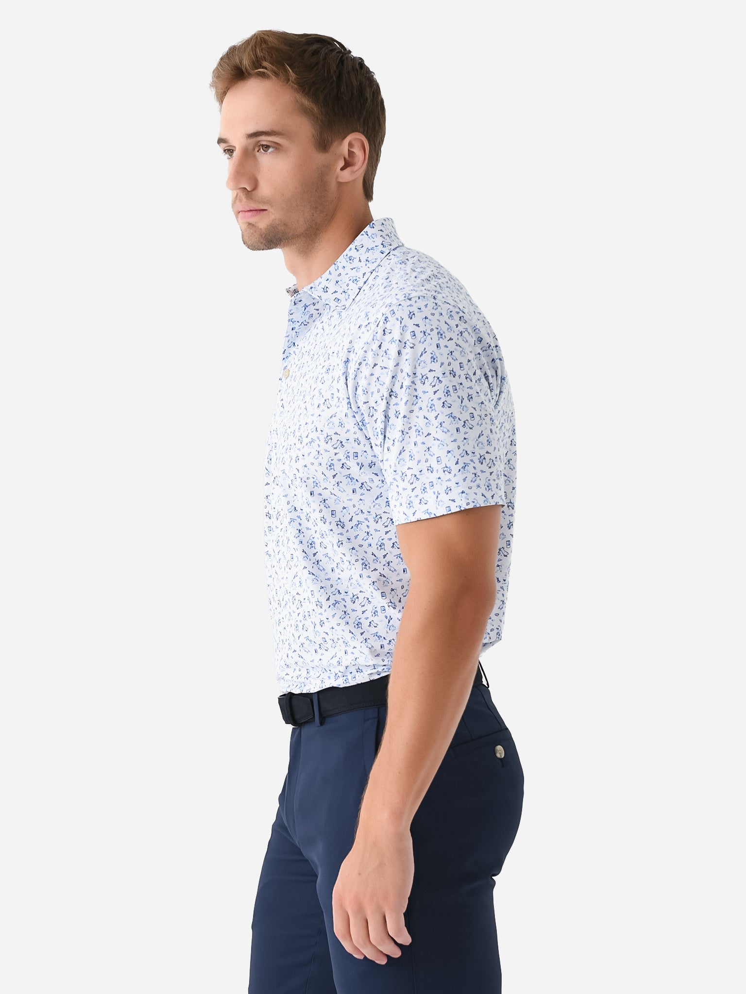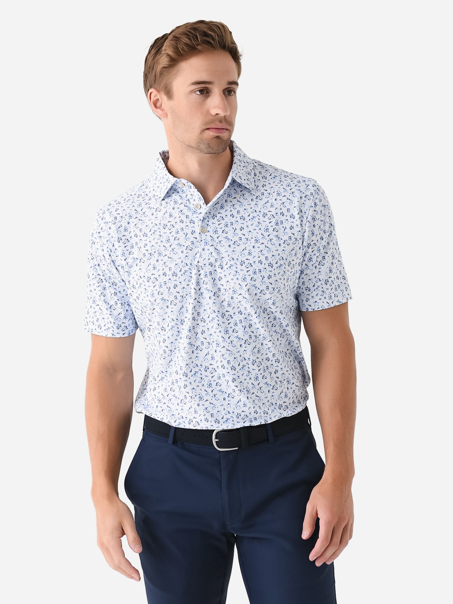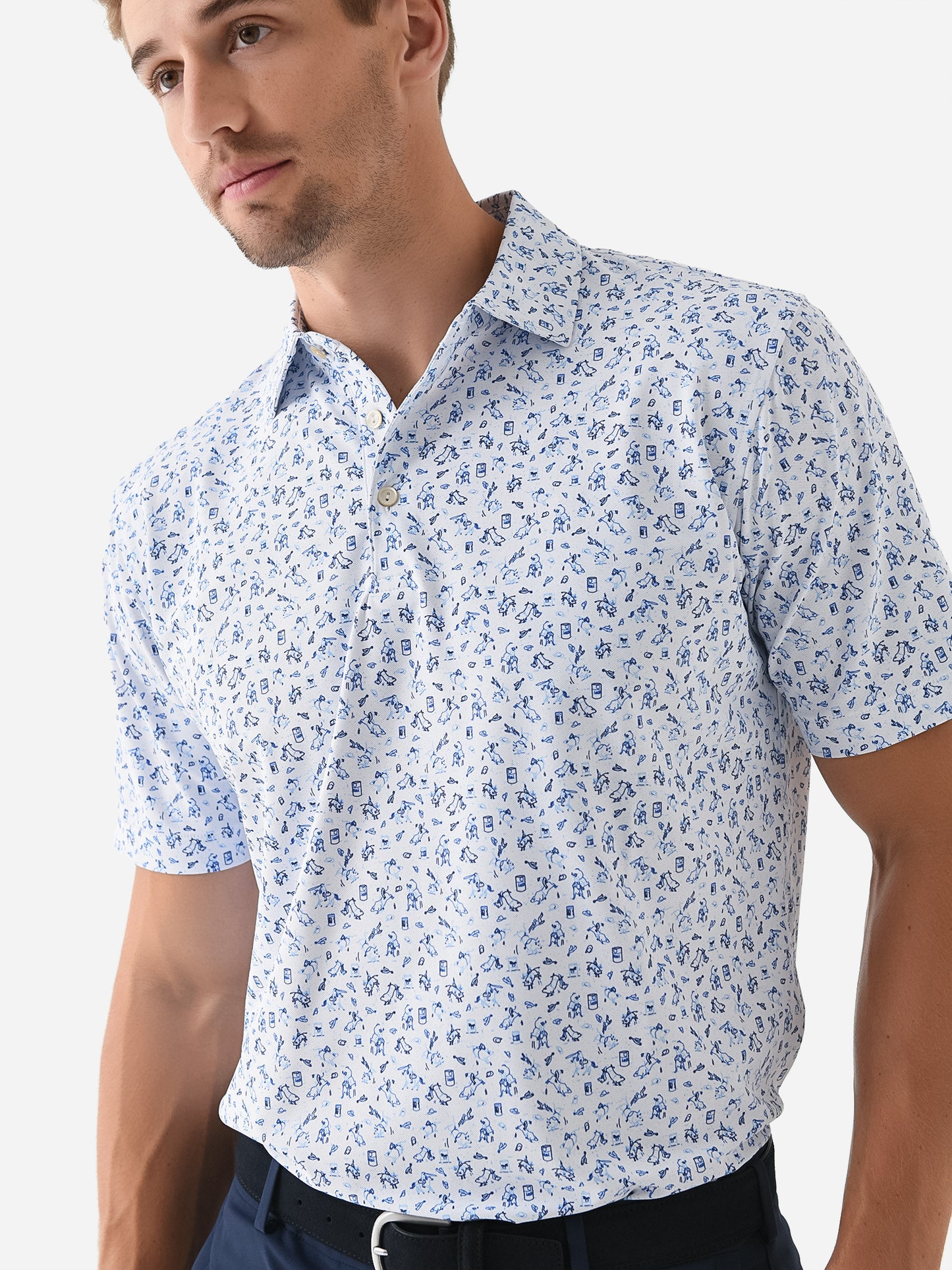 Breathable performance polo featuring a custom-designed rodeo print.