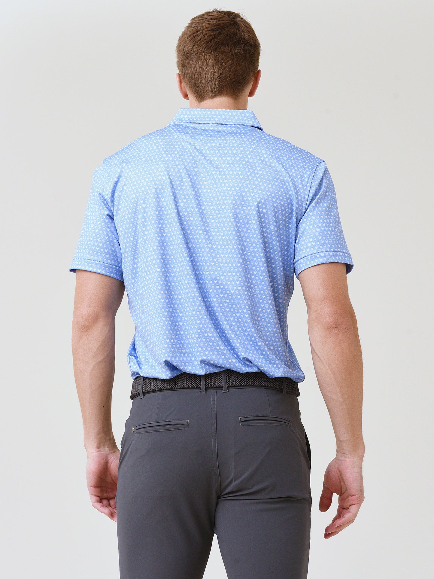 Moisture-wicking performance polo with a three-button placket.