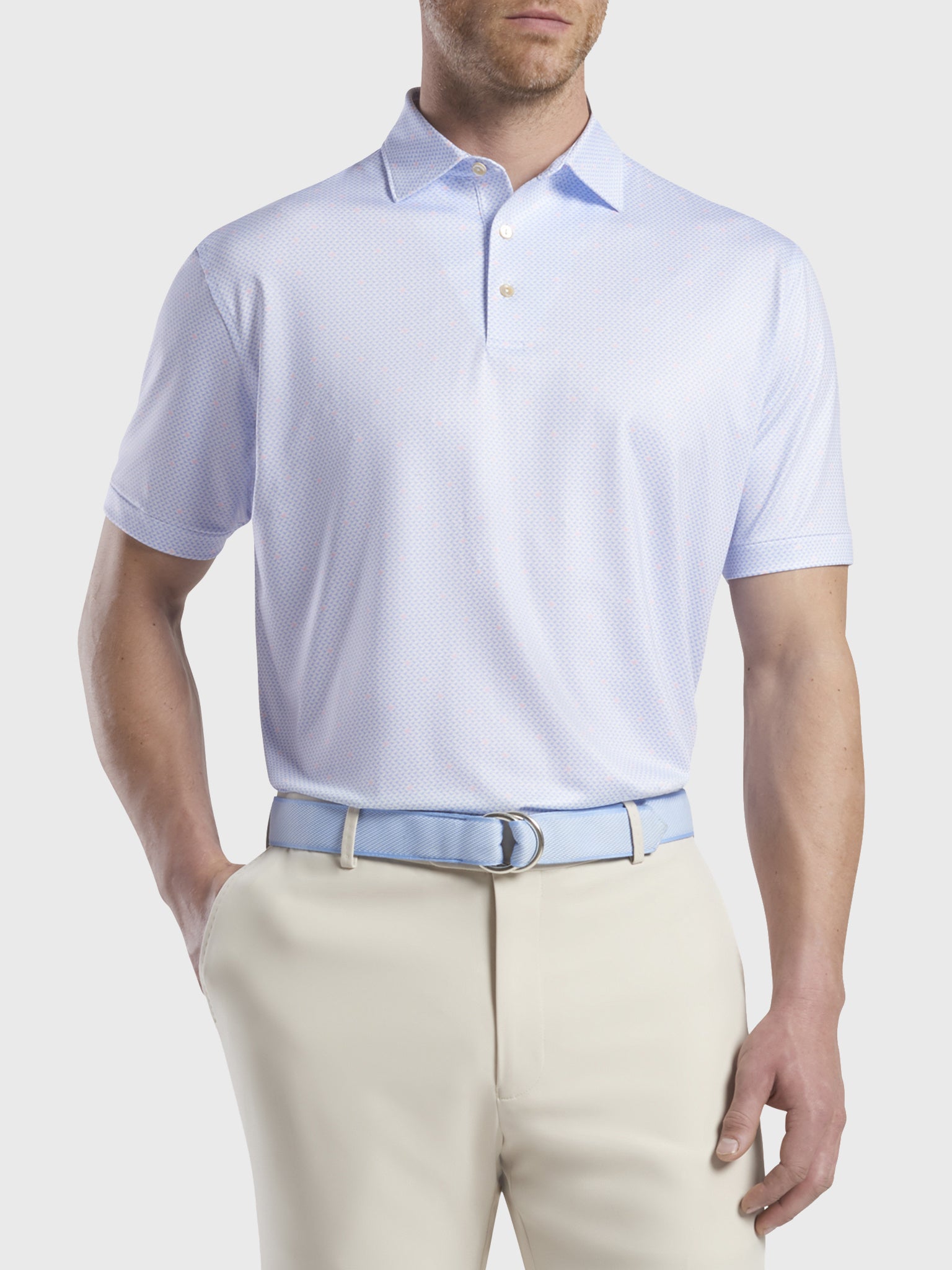 The Peter Millar Crown Sport Stocket Performance Polo offers UPF 50+ sun protection for all 18 holes.