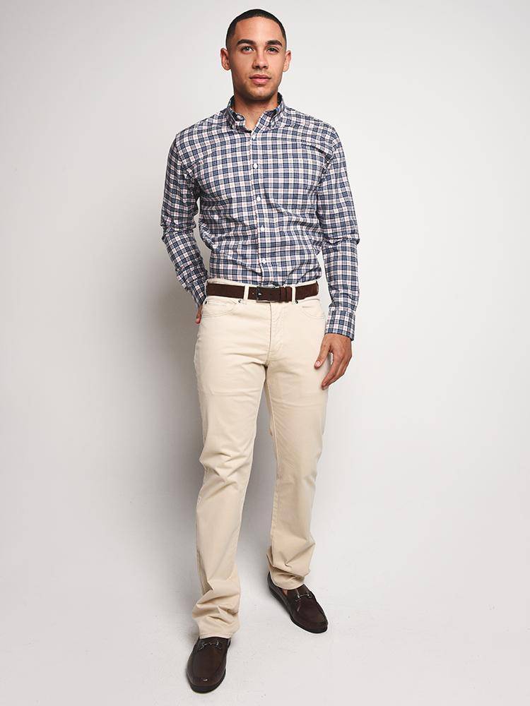 - Styled with Peter Millar Pant Style # MS18B93. Model is wearing size medium shirt and 33 pant.