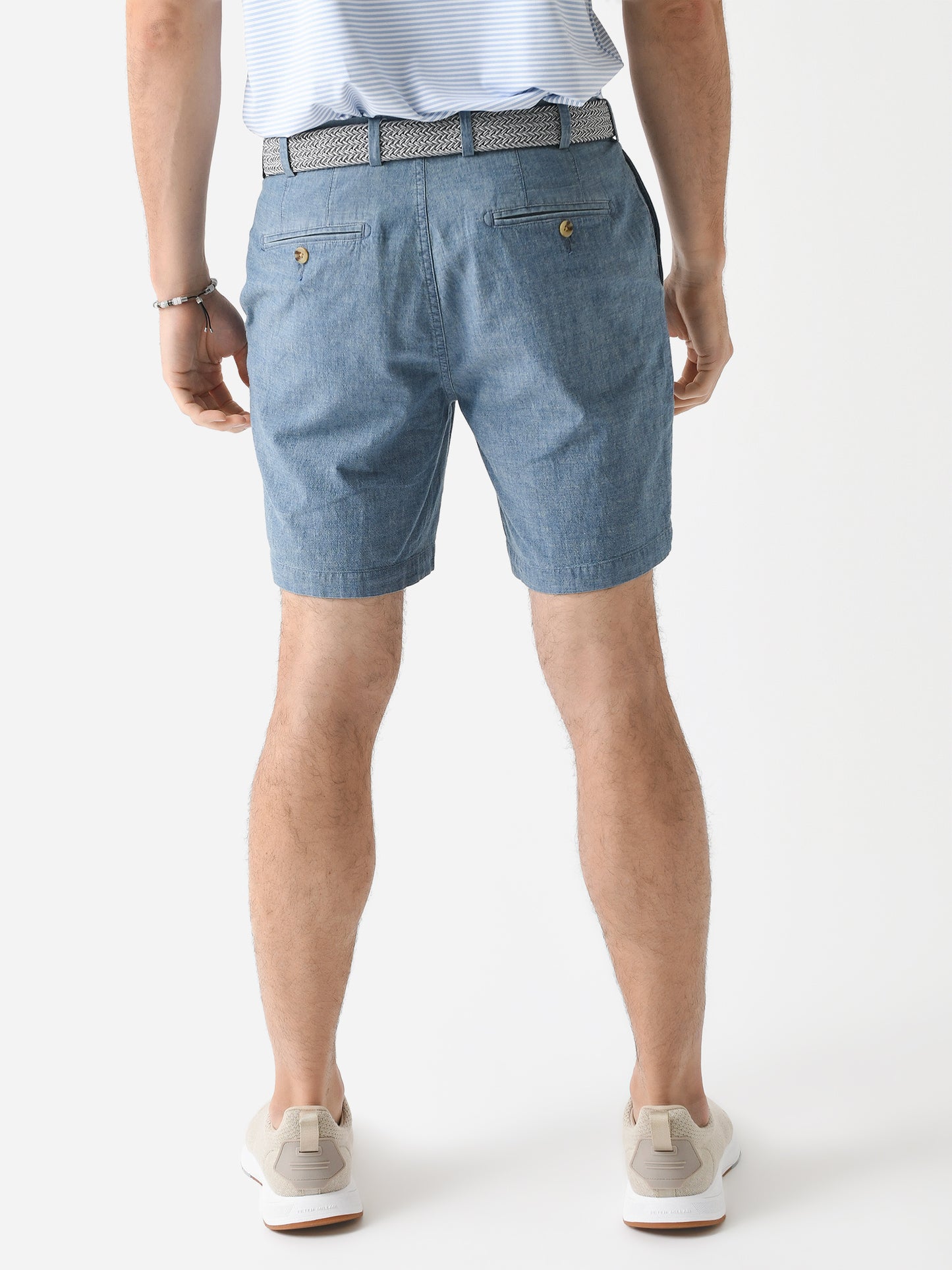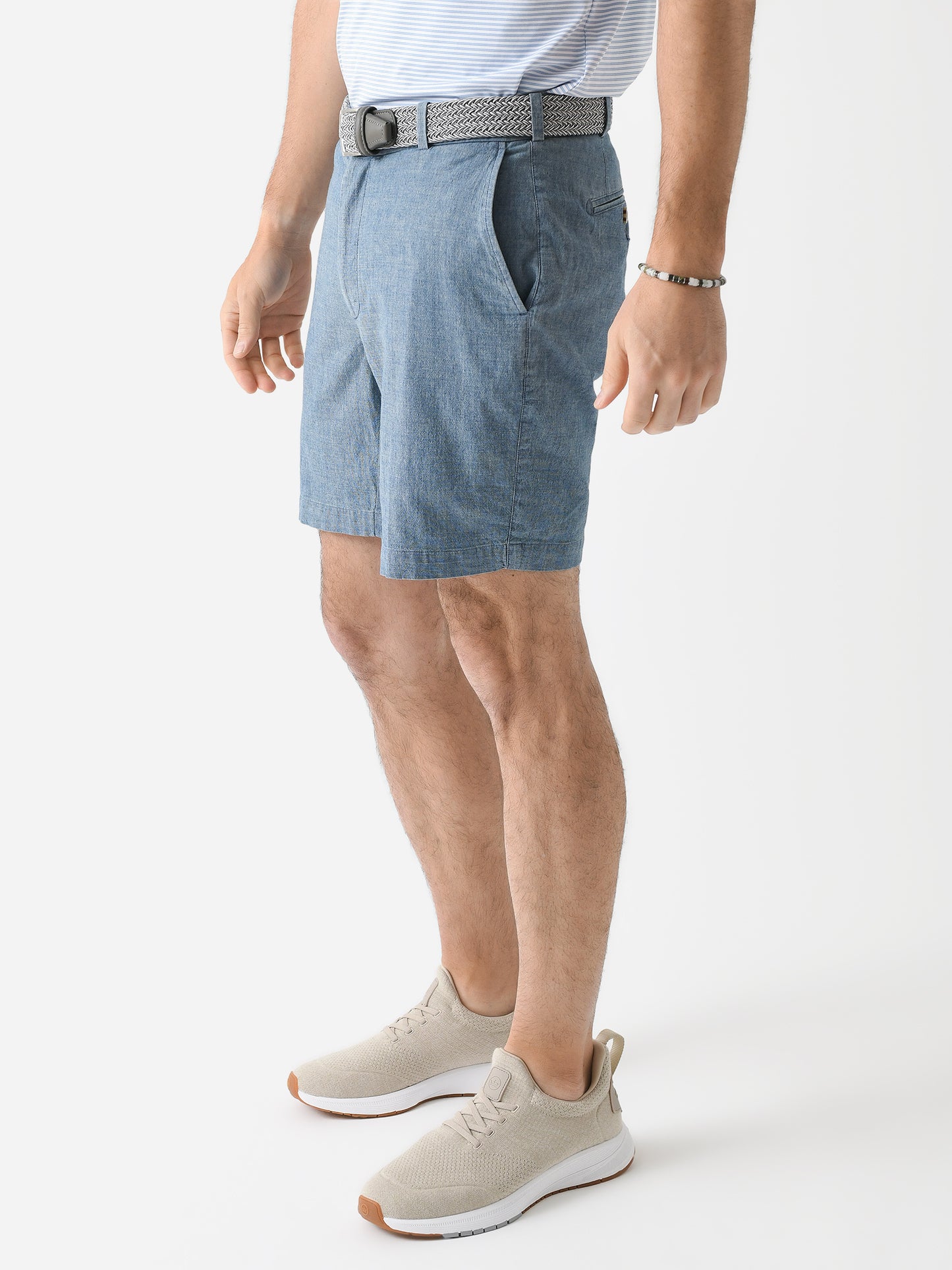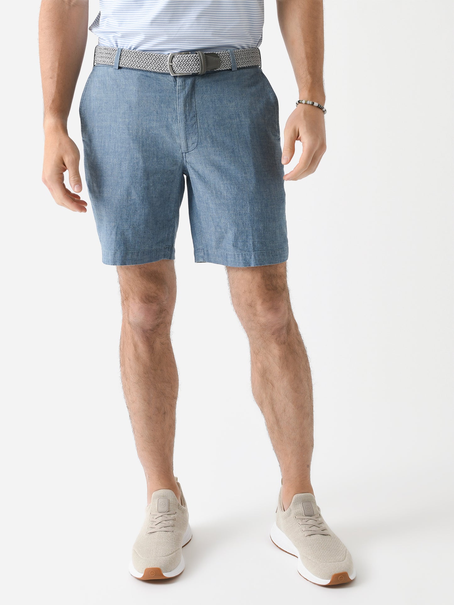 A casual warm-weather essential short made from lightweight chambray with a hint of stretch.