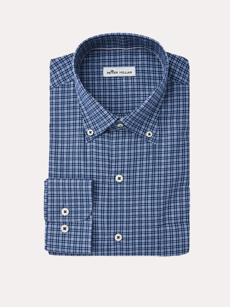 The Peter Millar Men's Crown Fleece Stretch Sully Micro-Check Sport Shirt is an ideal piece for the season.