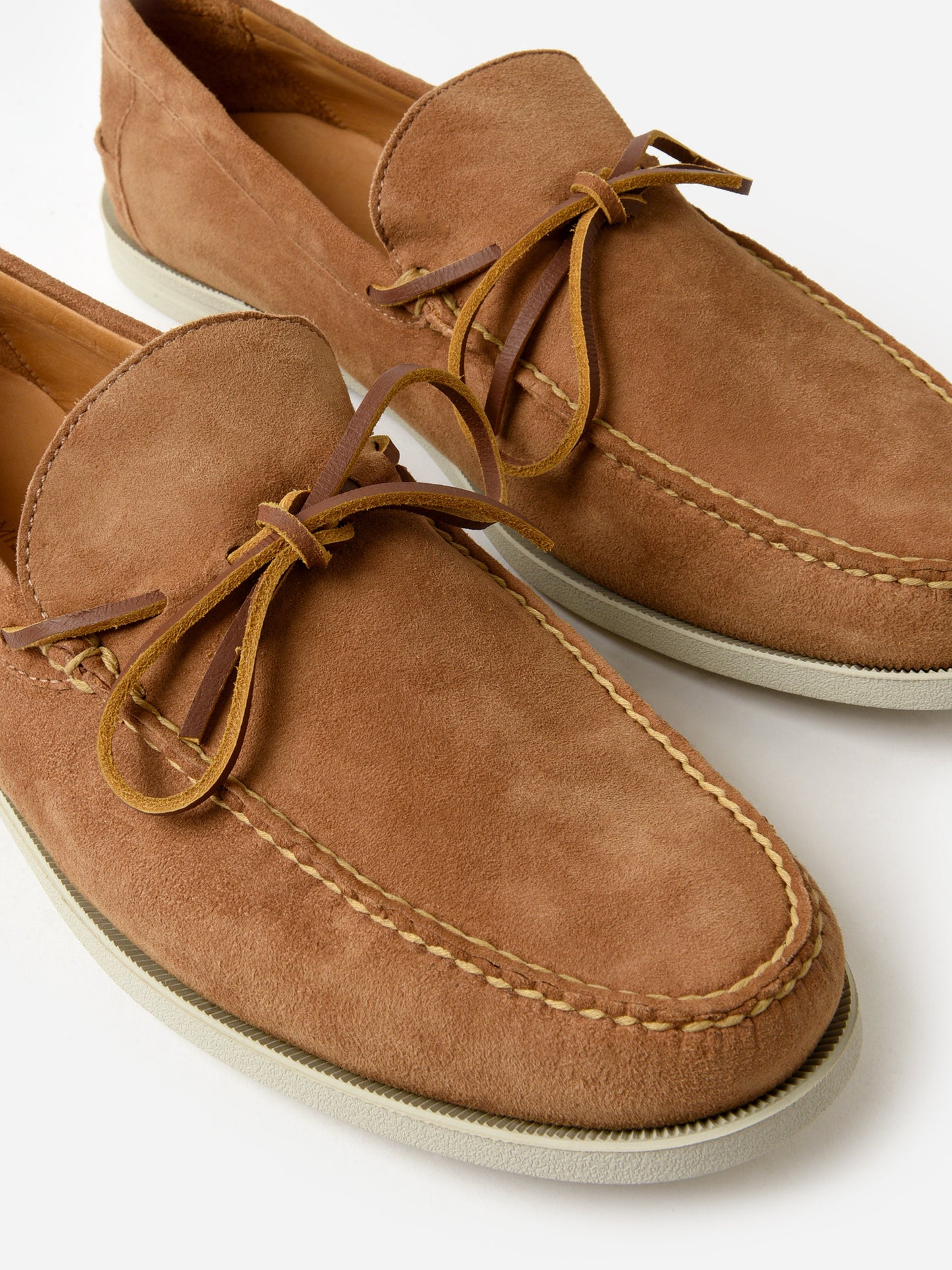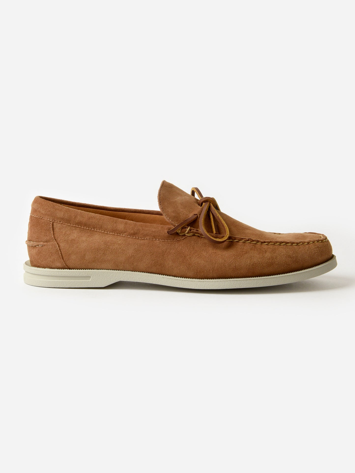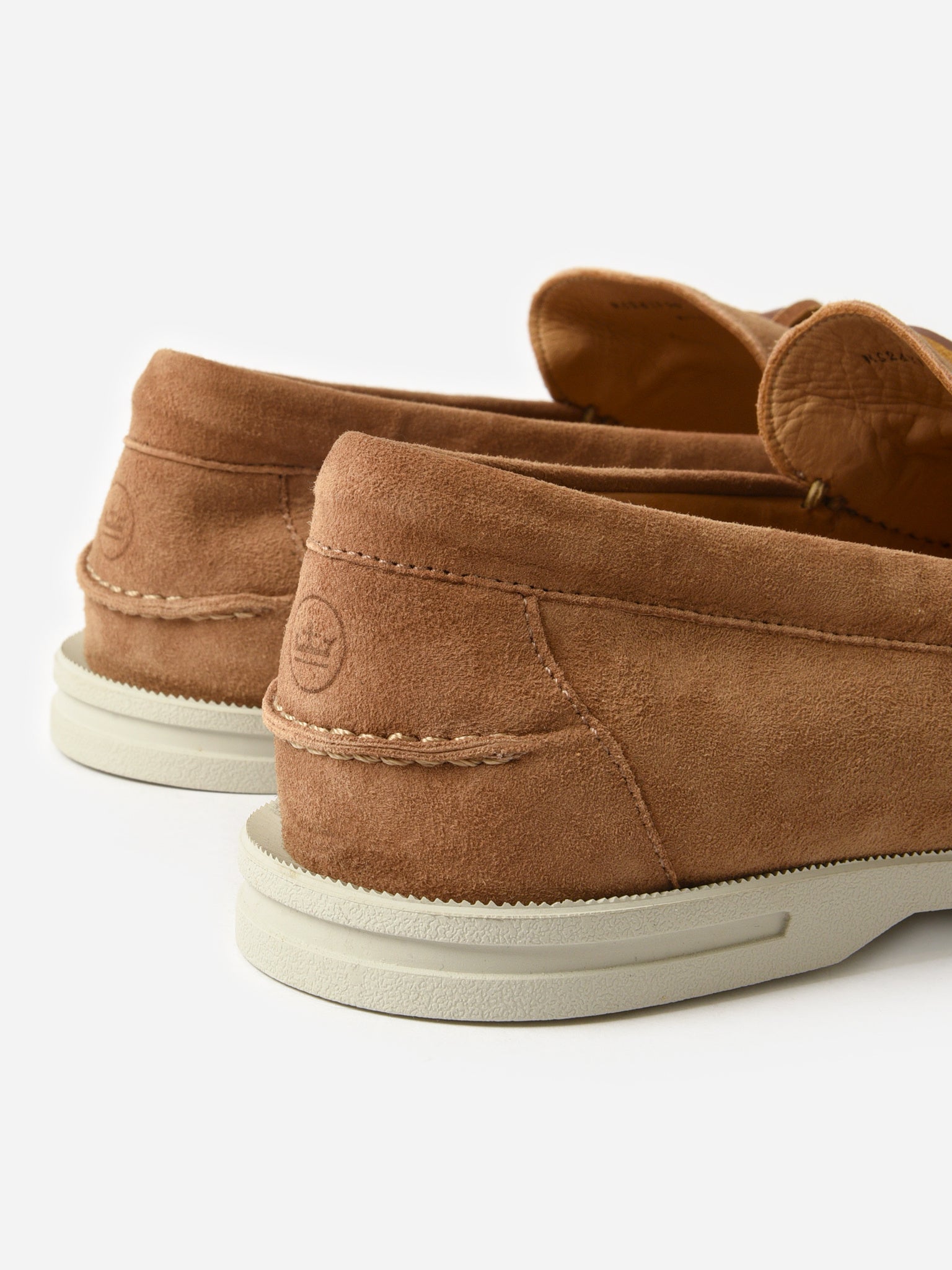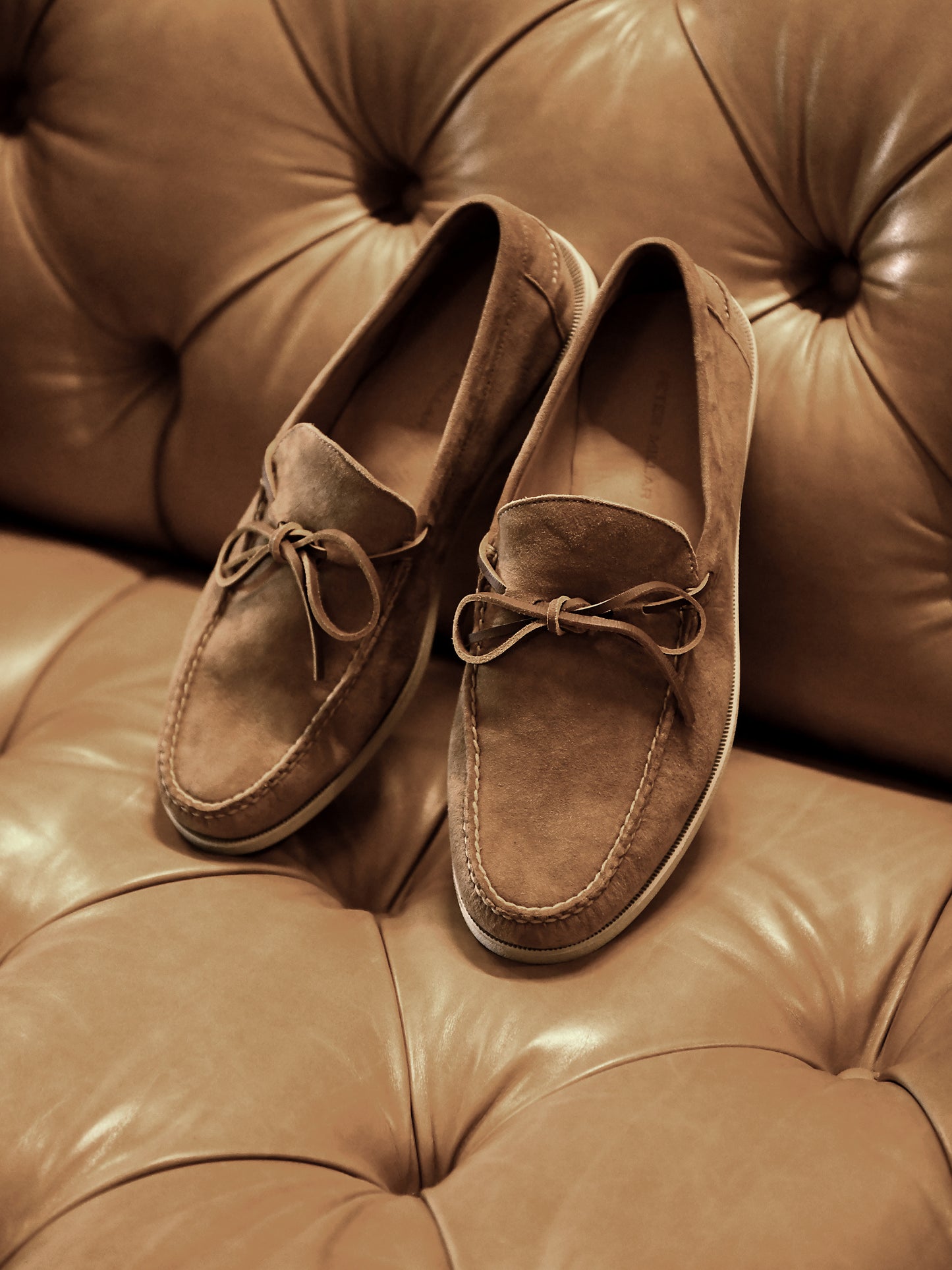 A soft, velvet-like suede loafer with a water-resistant finish.