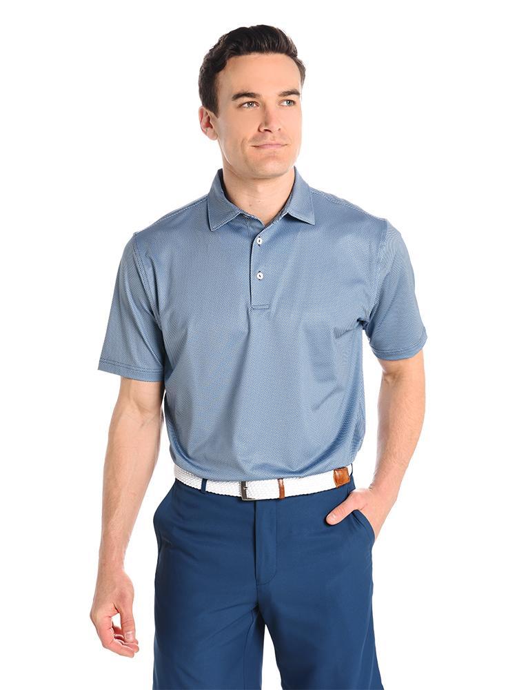 The Peter Millar International Printed Birdseye Stretch Jersey Polo moves with you on the course for a performance friendly fit.