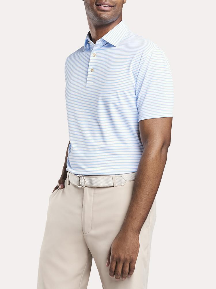 Keep your cool in warm climates in the moisture-wicking and quick-drying Peter Millar Peace Stripe Stretch Mesh Polo.