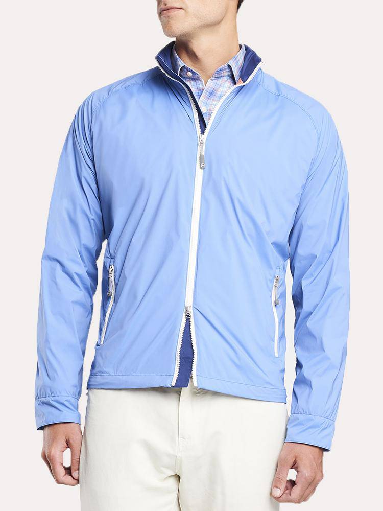 The windproof and water-reistant Peter Millar Seaside Windbreaker is easy to take with you anywhere.