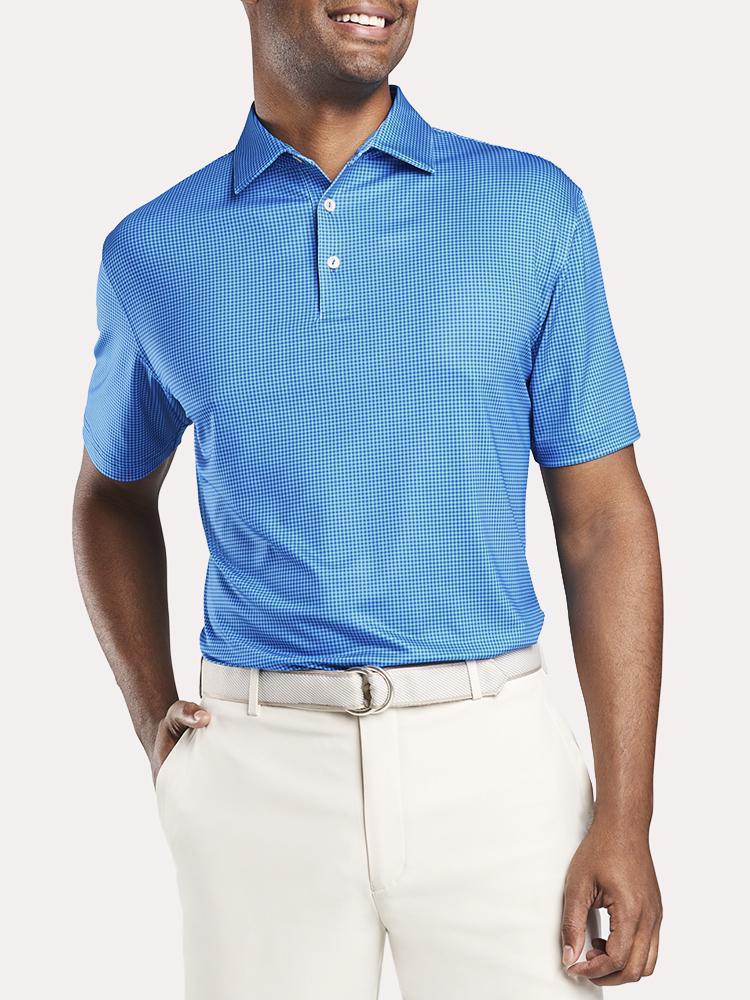 Be the most innovative when on the green with the Peter Millar Men's Stanbury Printed Mini Gingham Stretch Jersey Polo.