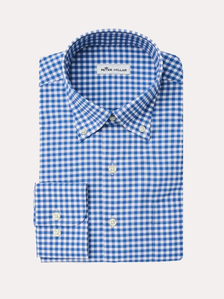 The Peter Millar Performance Stretch Humphrey Ginghan Woven Shirt takes you from the workweek to the weekend.