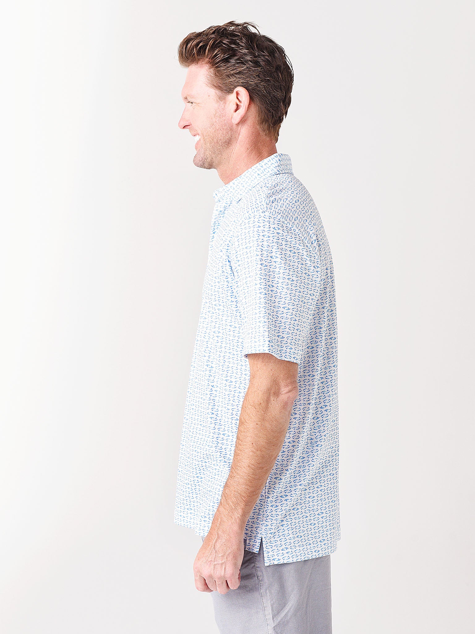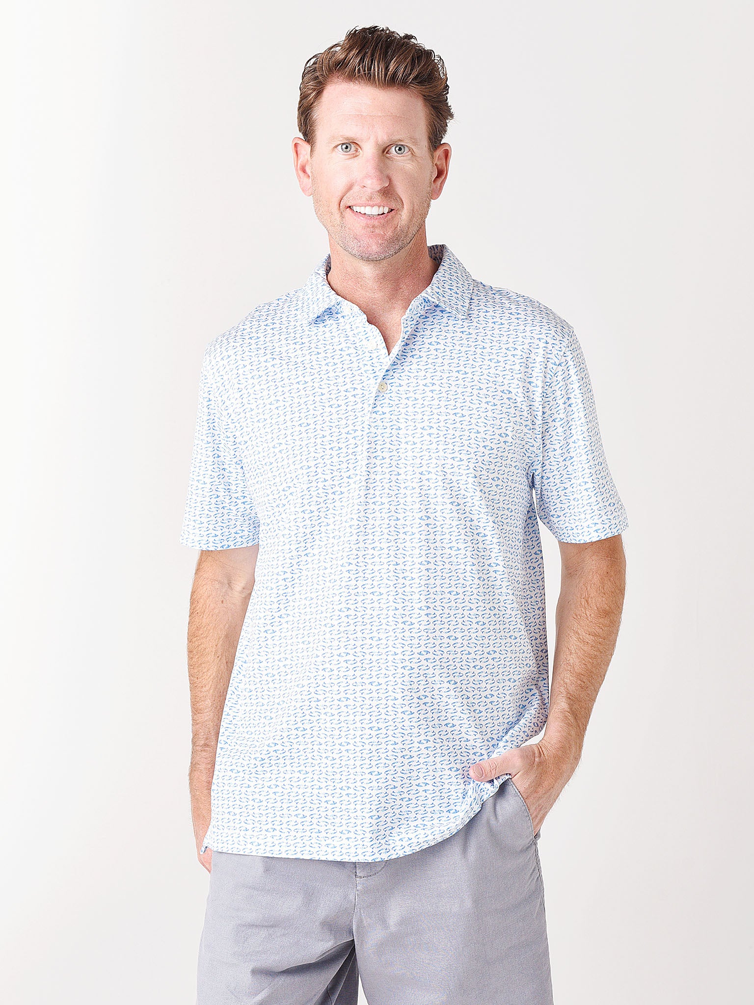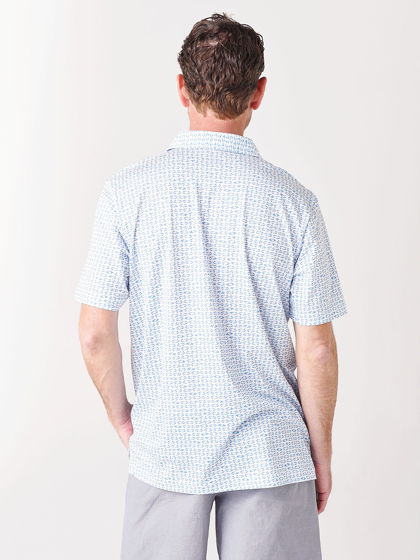 The Peter Millar Seaside Men's Swirling Mermaid Aqua Cotton Polo is made from a super-soft Pima-cotton that provides fluid, relaxed drape, and unparalleled comfort. A unique novelty print custom-designed in PM's Pilot Mill studio lends an added touch of style.