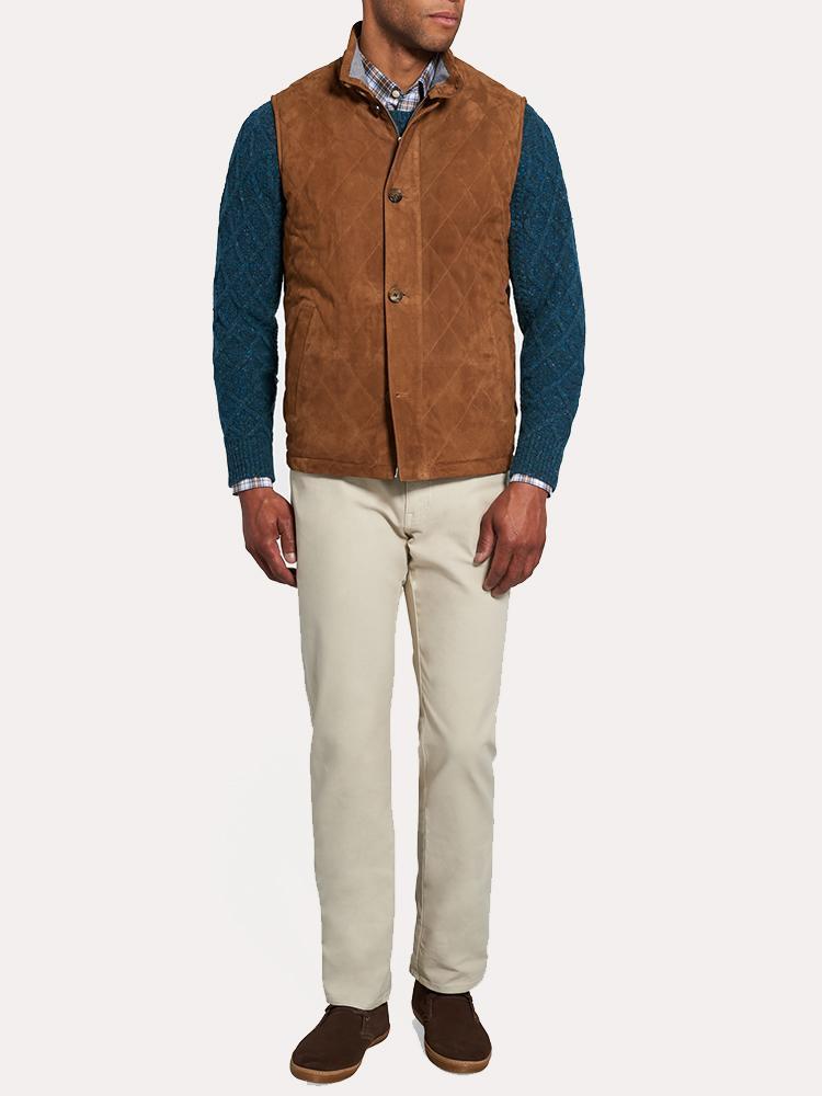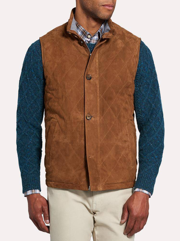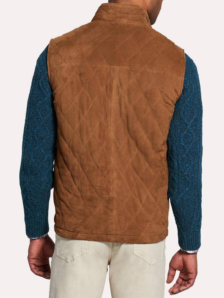 Worthington Vest is crafted from luxurious goat suede leather and diamond quilted for ideal warmth during fall and winter. Finished with an interior rib-knit collar, besom pockets, two-way zip front closure and button placket. Coordinate this refined vest with Mountainside sweaters and sport shirts for a cultivated appearance.