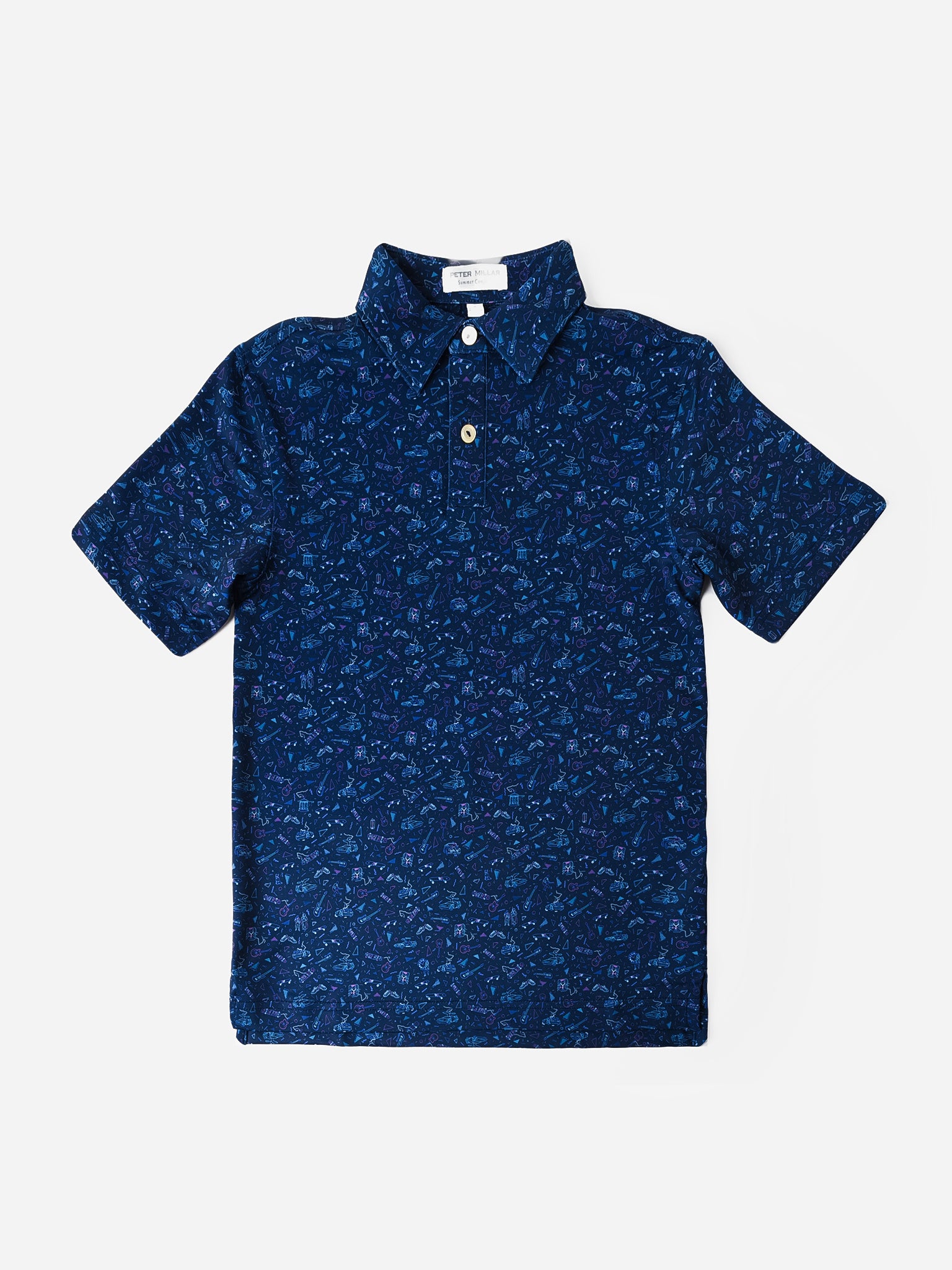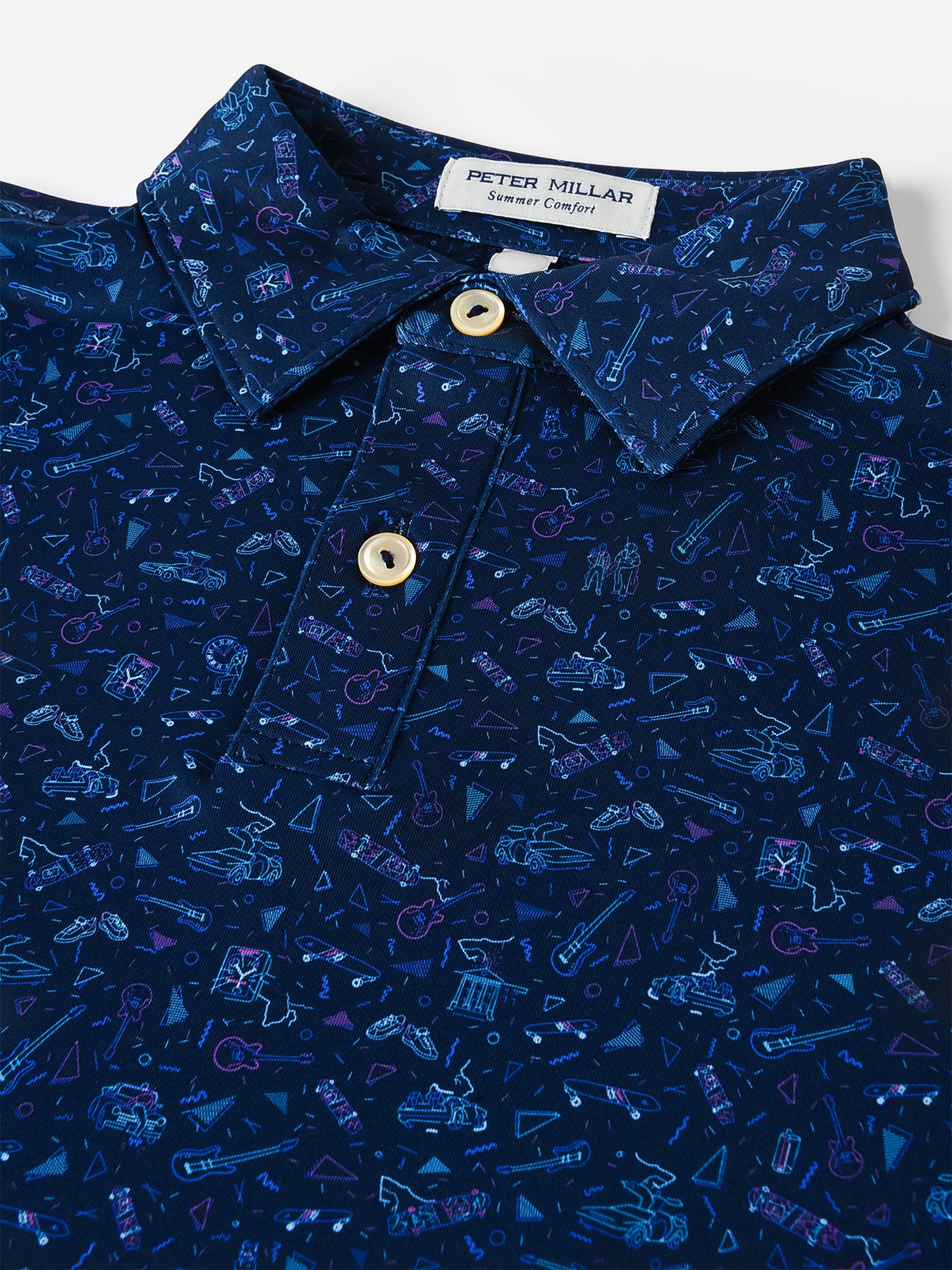 Lightweight performance polo with a unique hand-designed '80s print.