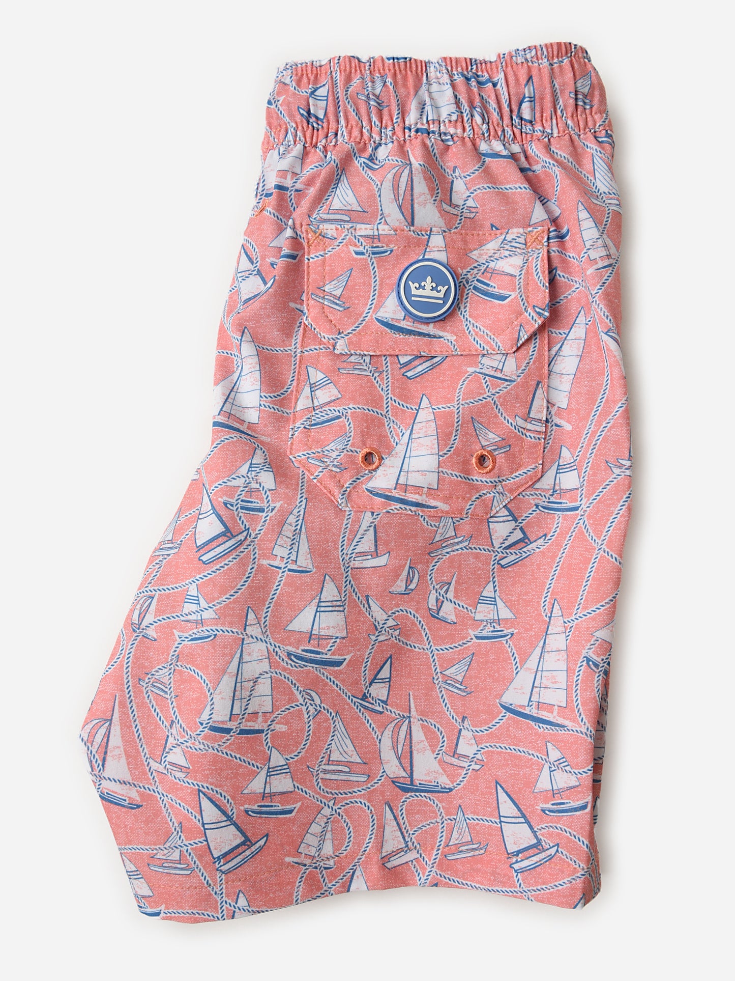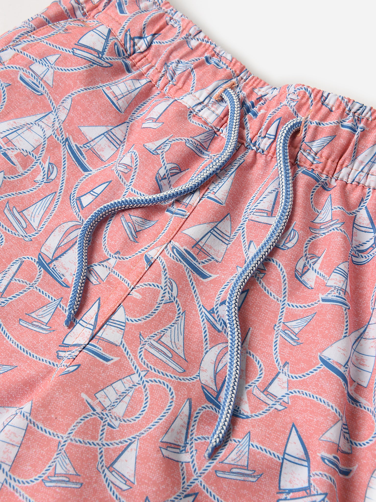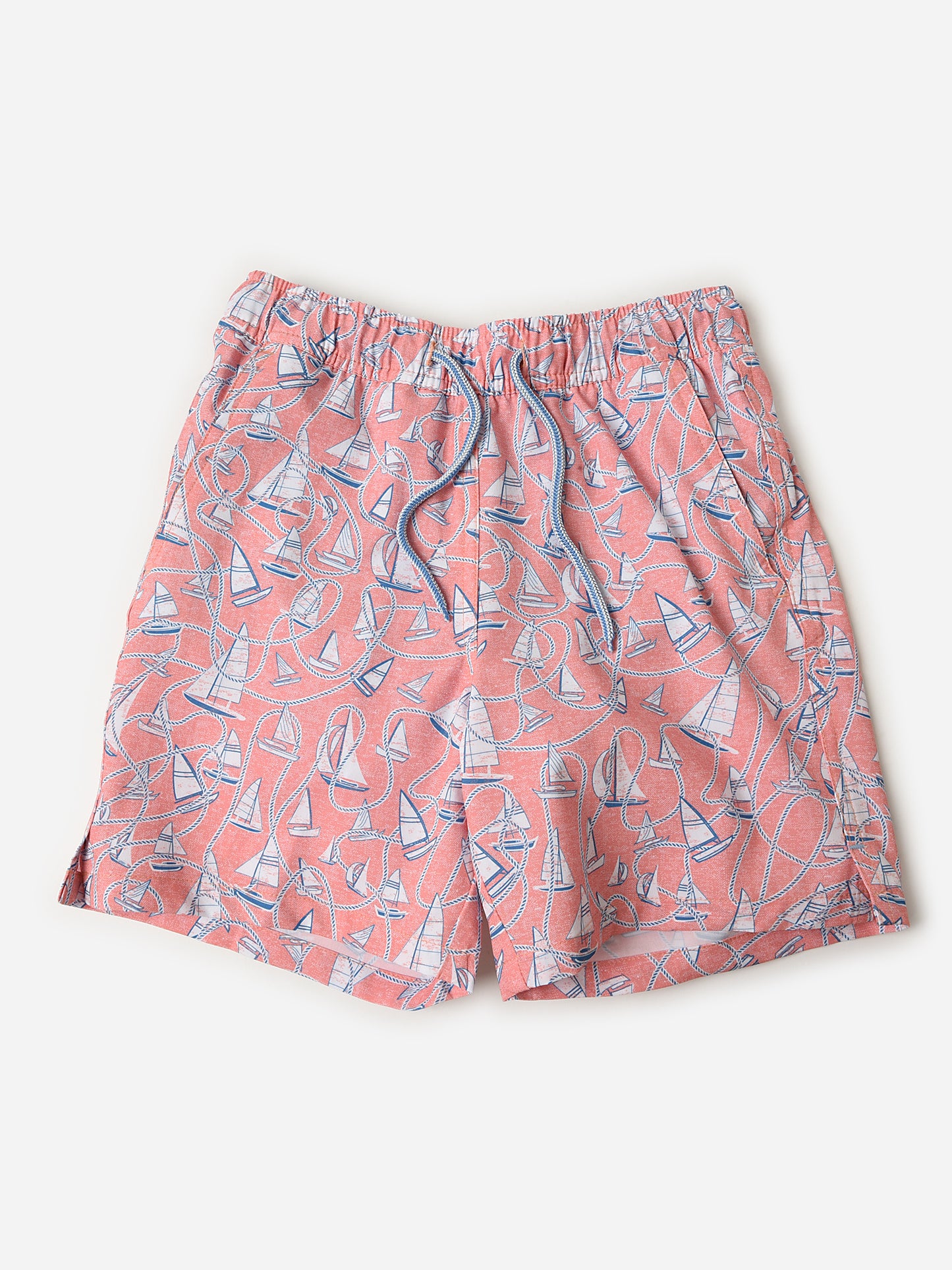 A breathable swim trunk made from quick-drying fabric with a custom boat print.