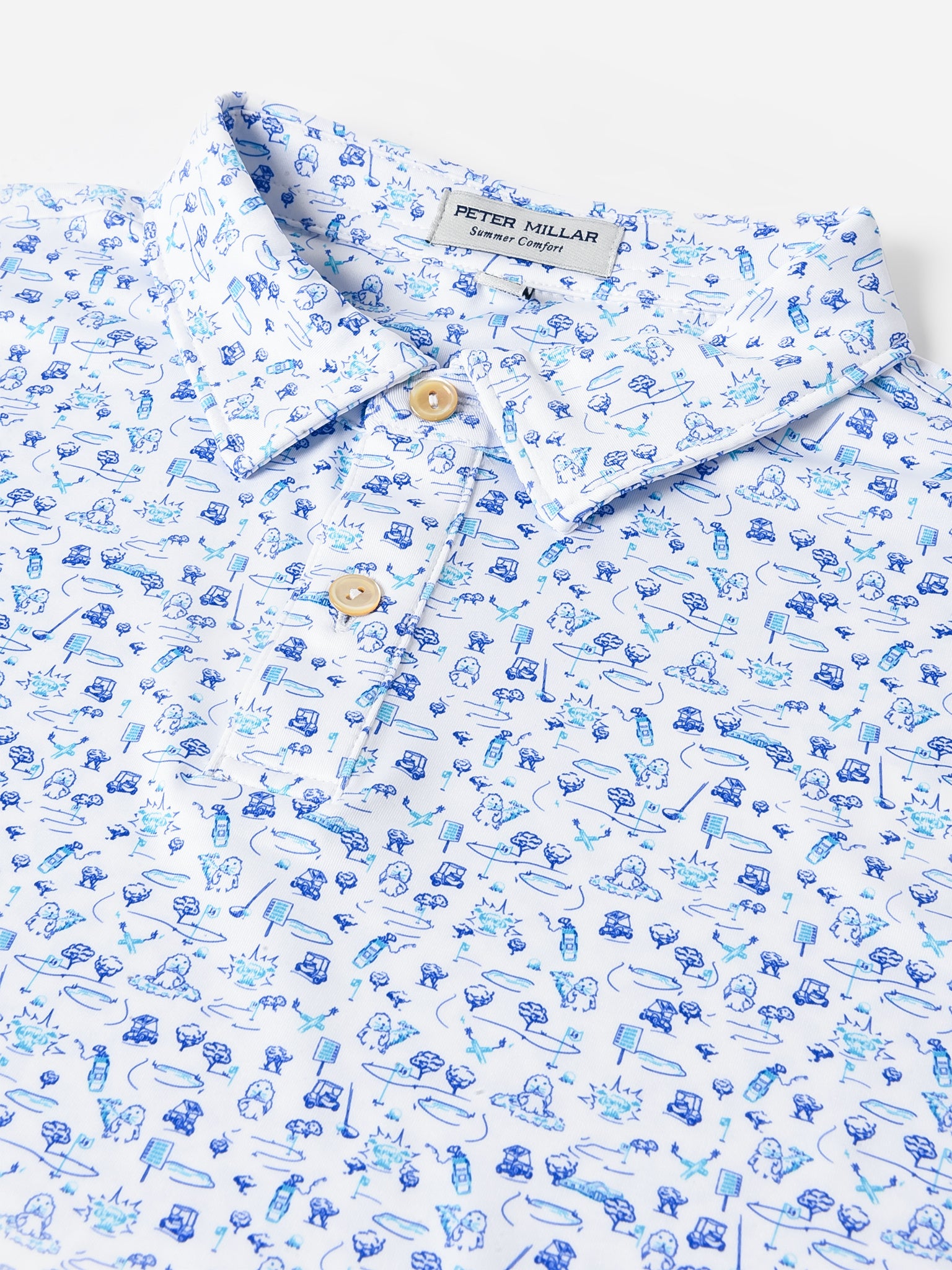 Comfortable performance polo made from breathable four-way stretch fabric with a golf course-inspired print.