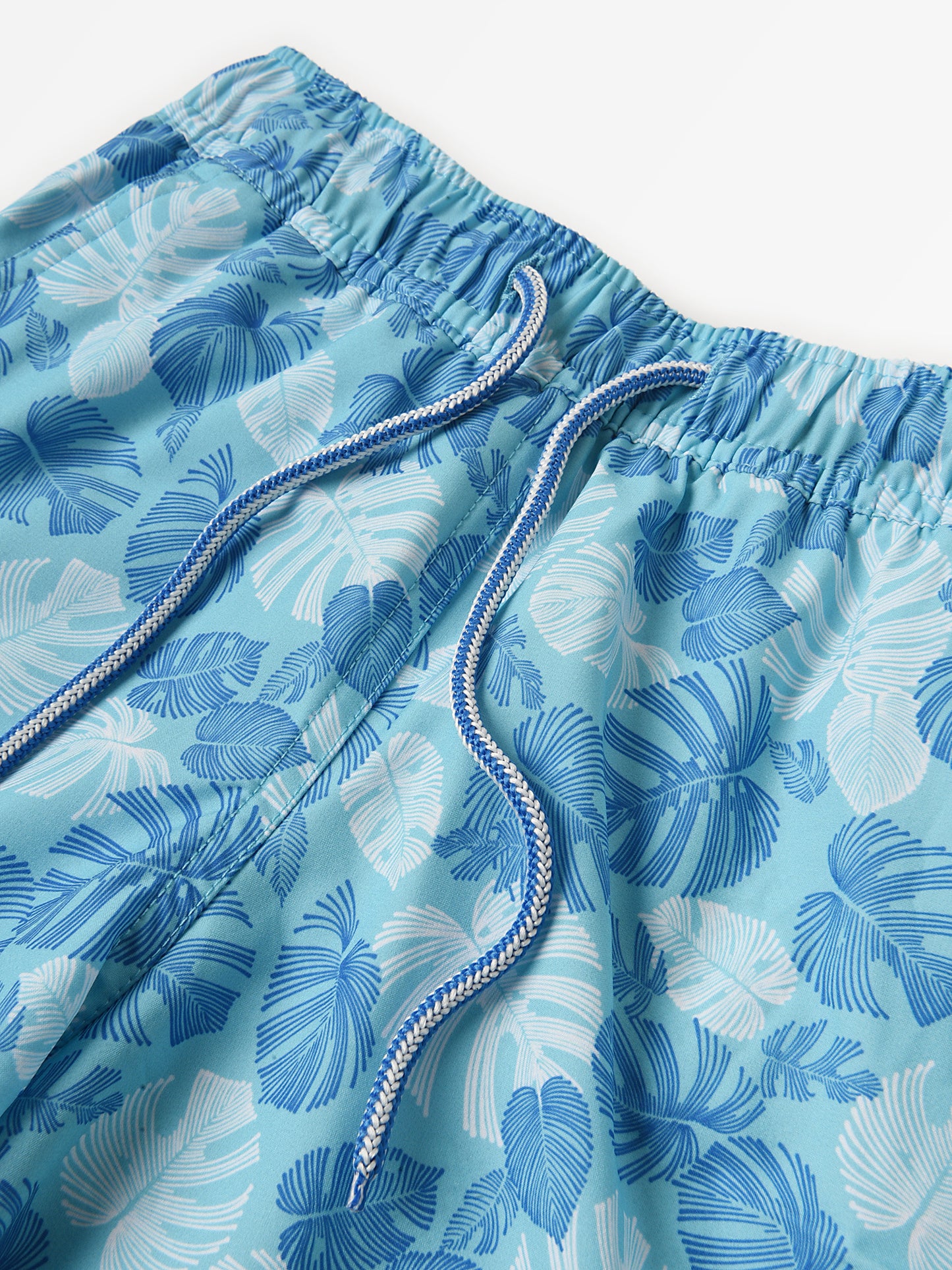 A breathable swim trunk with comfortable four-way stretch and a custom Monstera print.