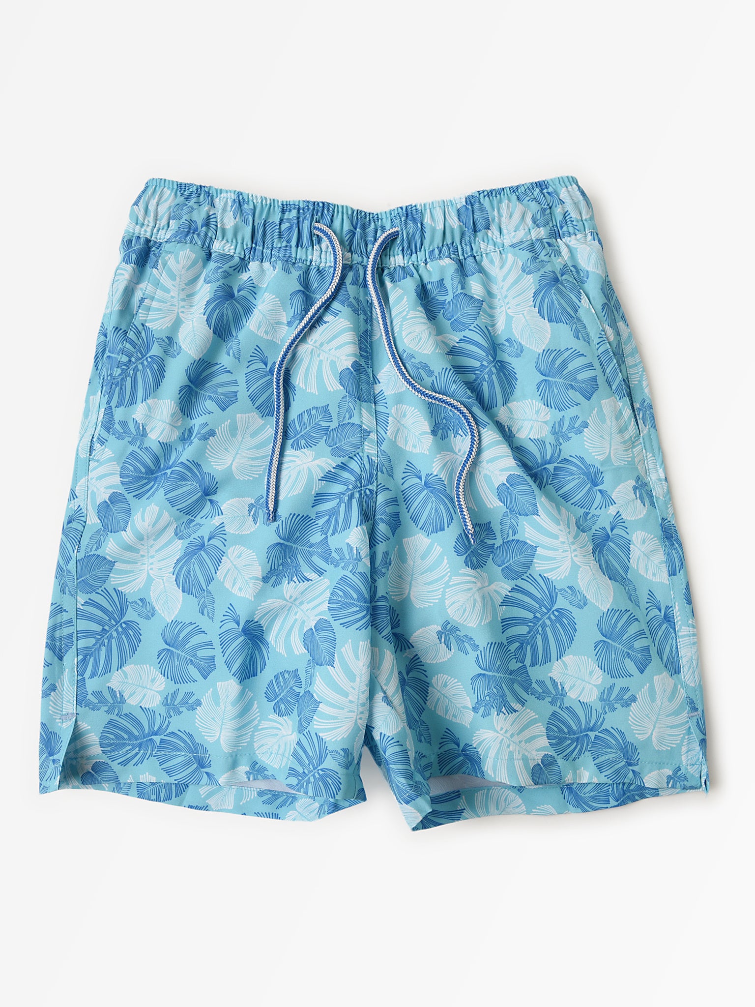 Youth Collection Boys' Linework Monstera Swim Trunk