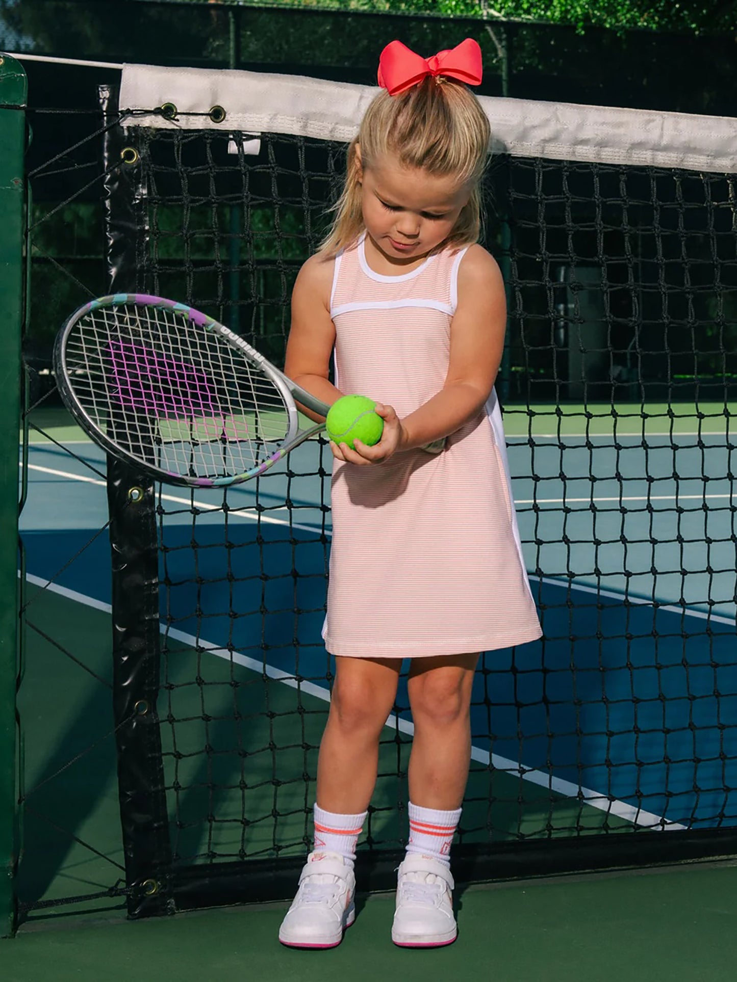 This striped active dress is made from breathable performance fabric and offers a comfortable, everyday design.