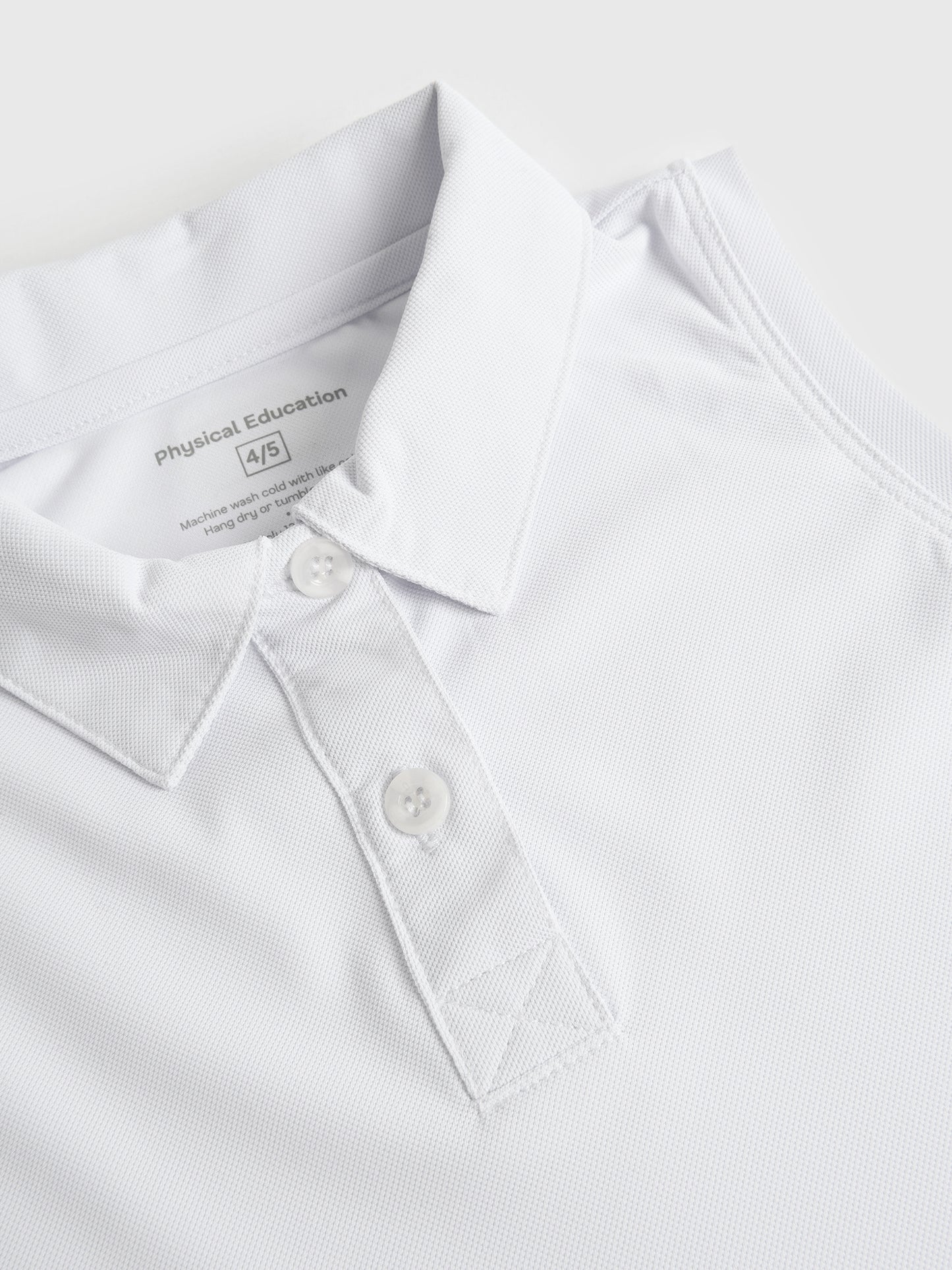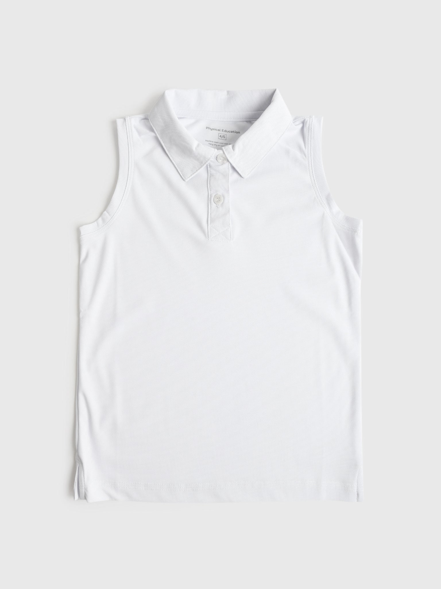 This sleeveless polo is made from performance piqué fabric and features reinforced seams for added comfort.