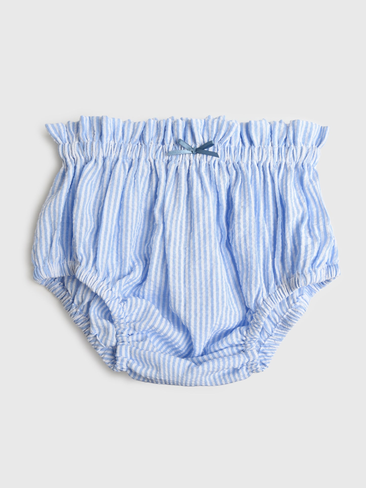 A lightweight cotton dress and diaper cover set featuring a custom watercolor bunny print.