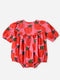 This sweet bubble is adorned with a playful apple graphic on a bright pink background. Its charming design features signature glitter buttons and a tiny leg ruffle.