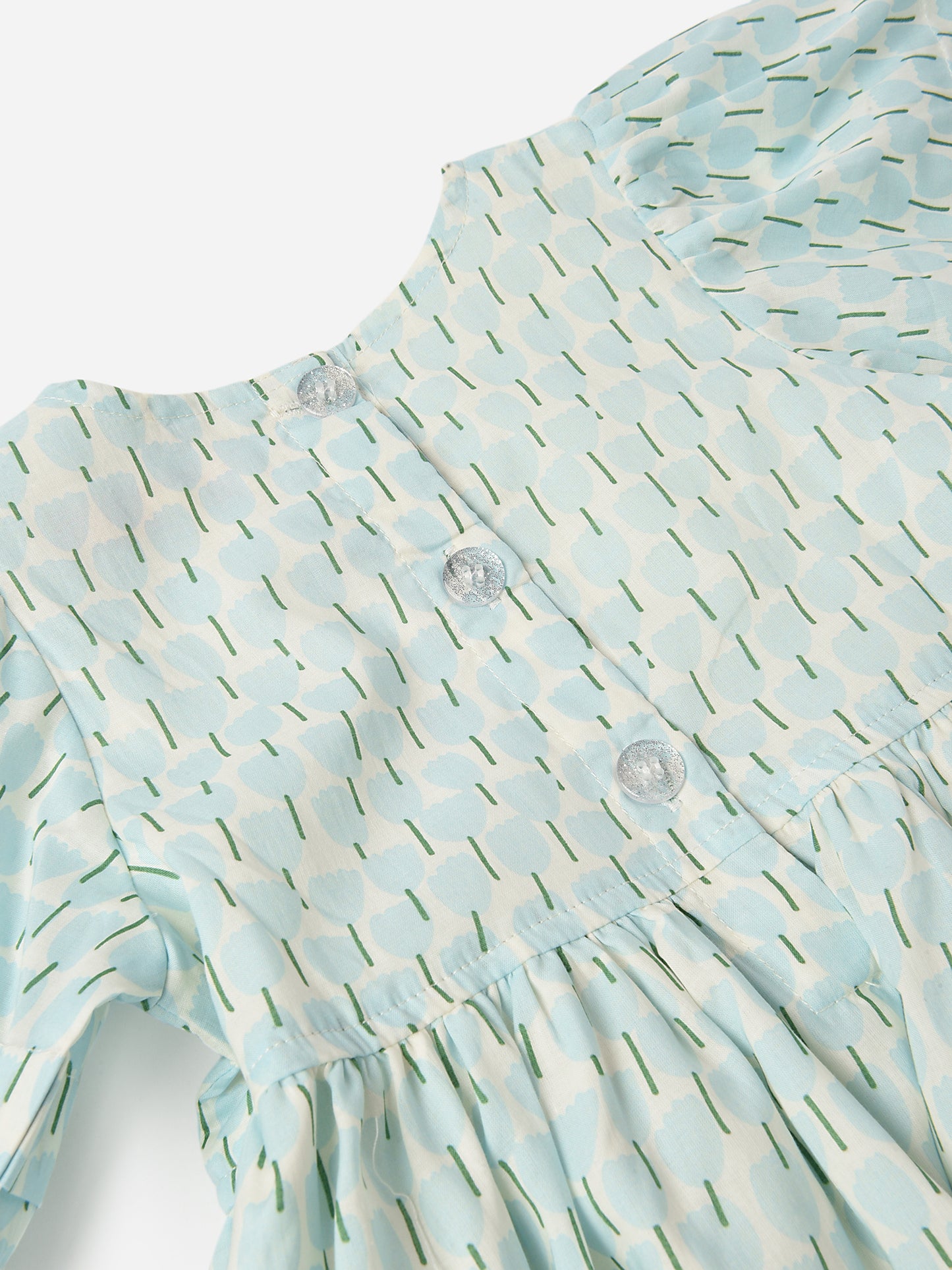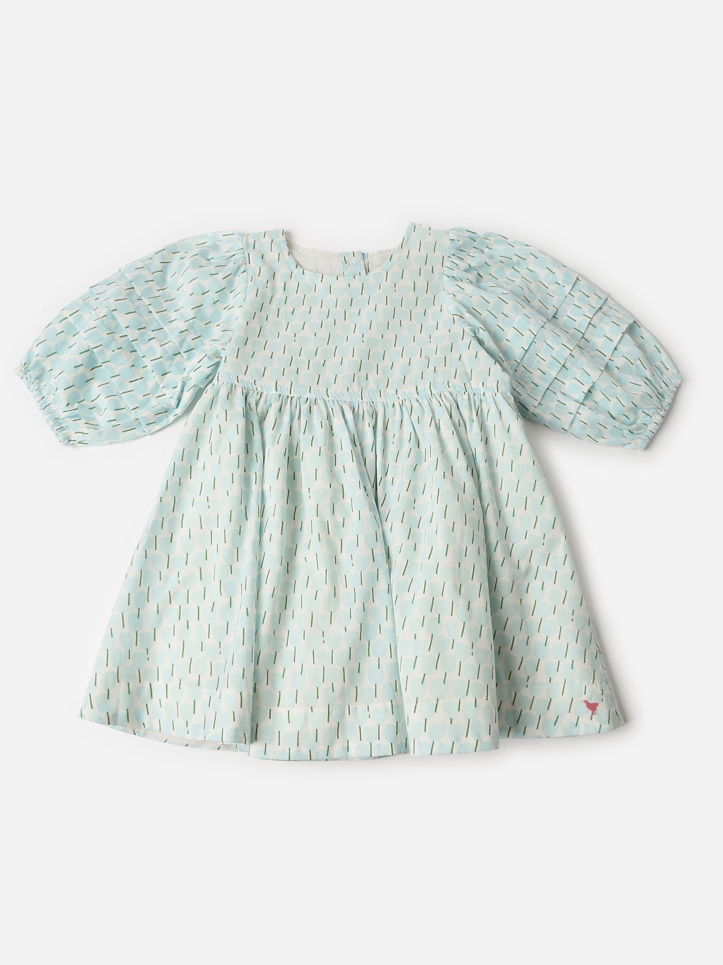 A lightweight cotton puff sleeve dress featuring a spring-ready tulip print.