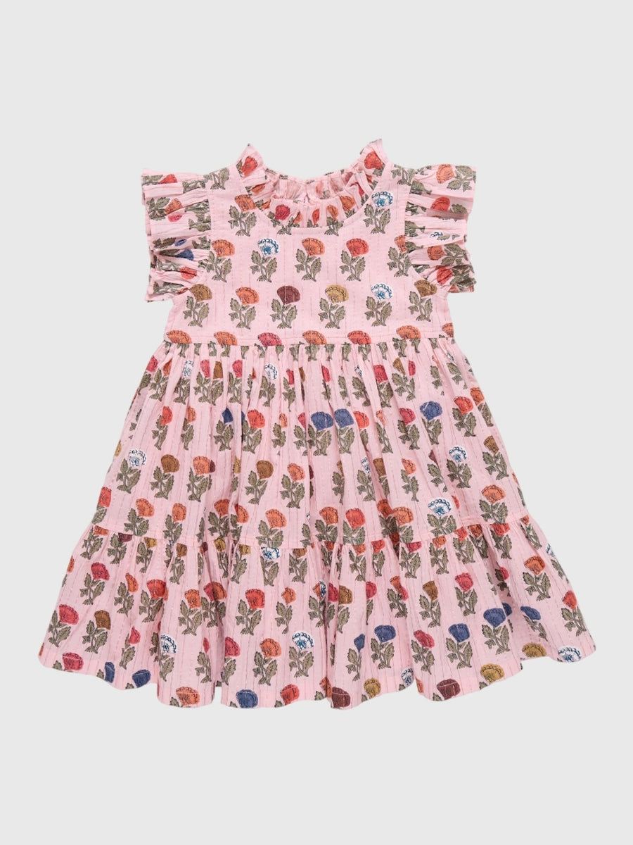 A twirl-ready favorite designed for everyday play and special spring moments, this cheerful floral dress features soft ruffles at the sleeves and neckline. The silhouette is defined by a tiered skirt that adds movement and volume.