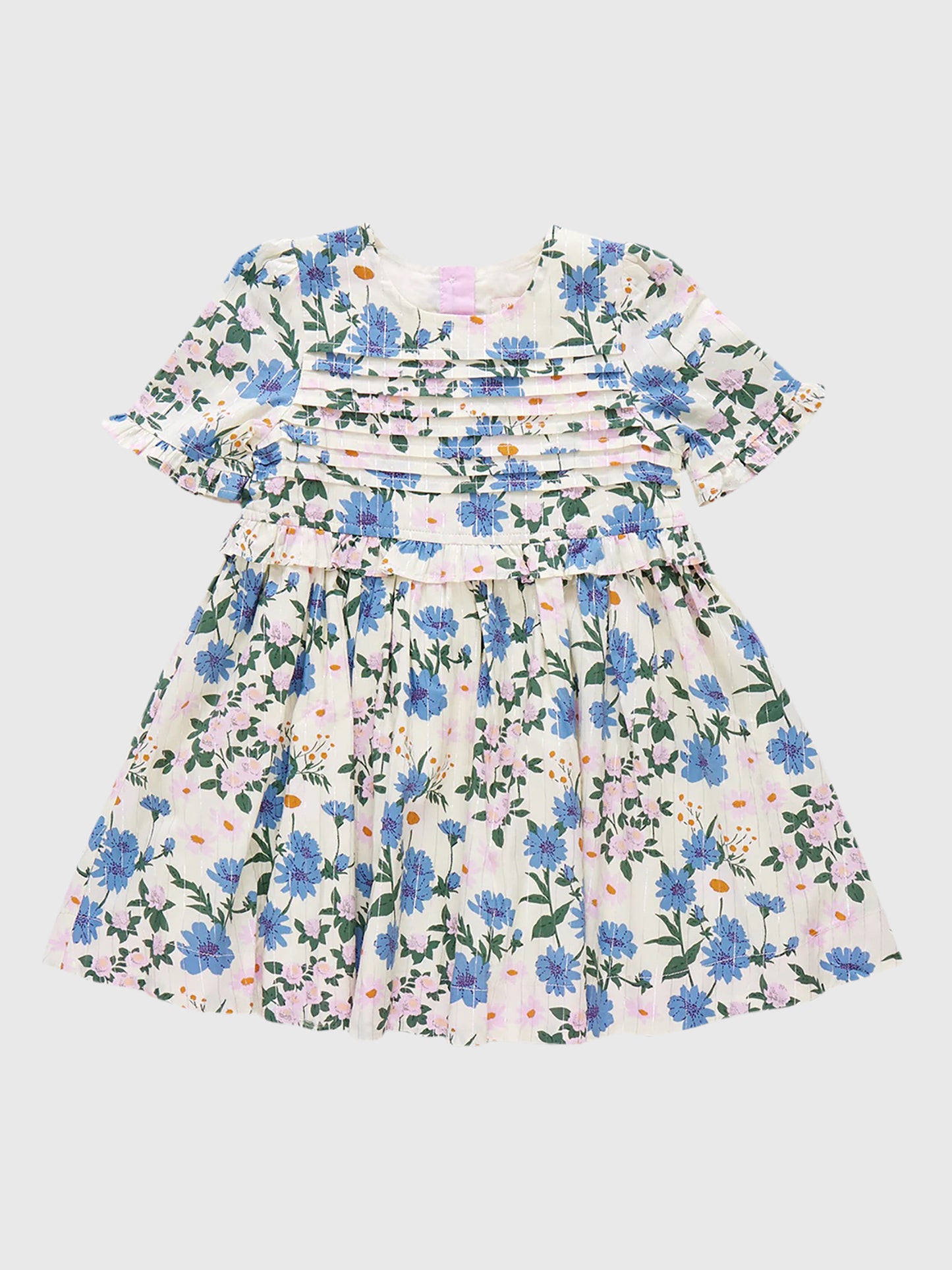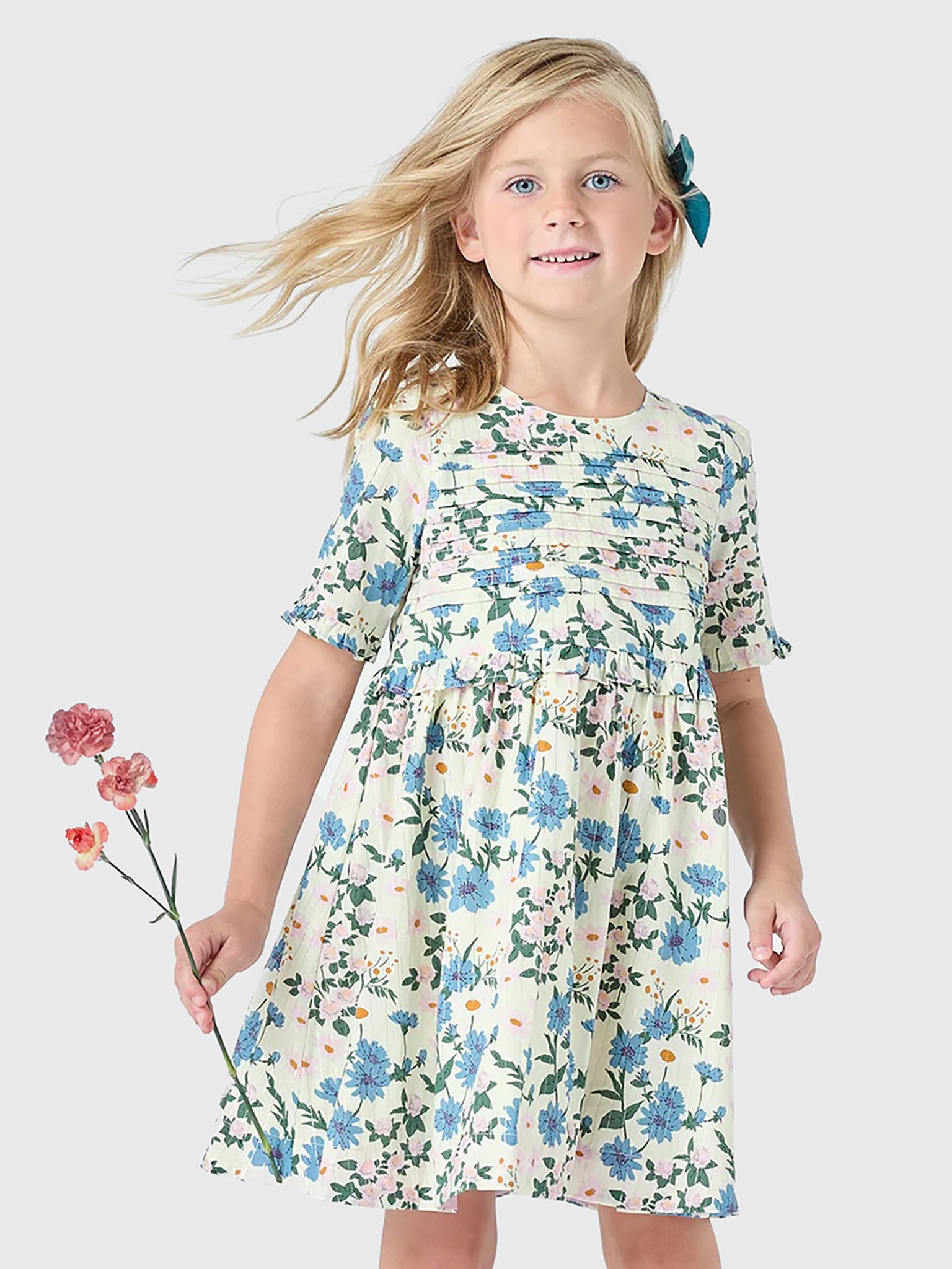 This lightweight cotton dress features pintuck details and a fresh daisy print.