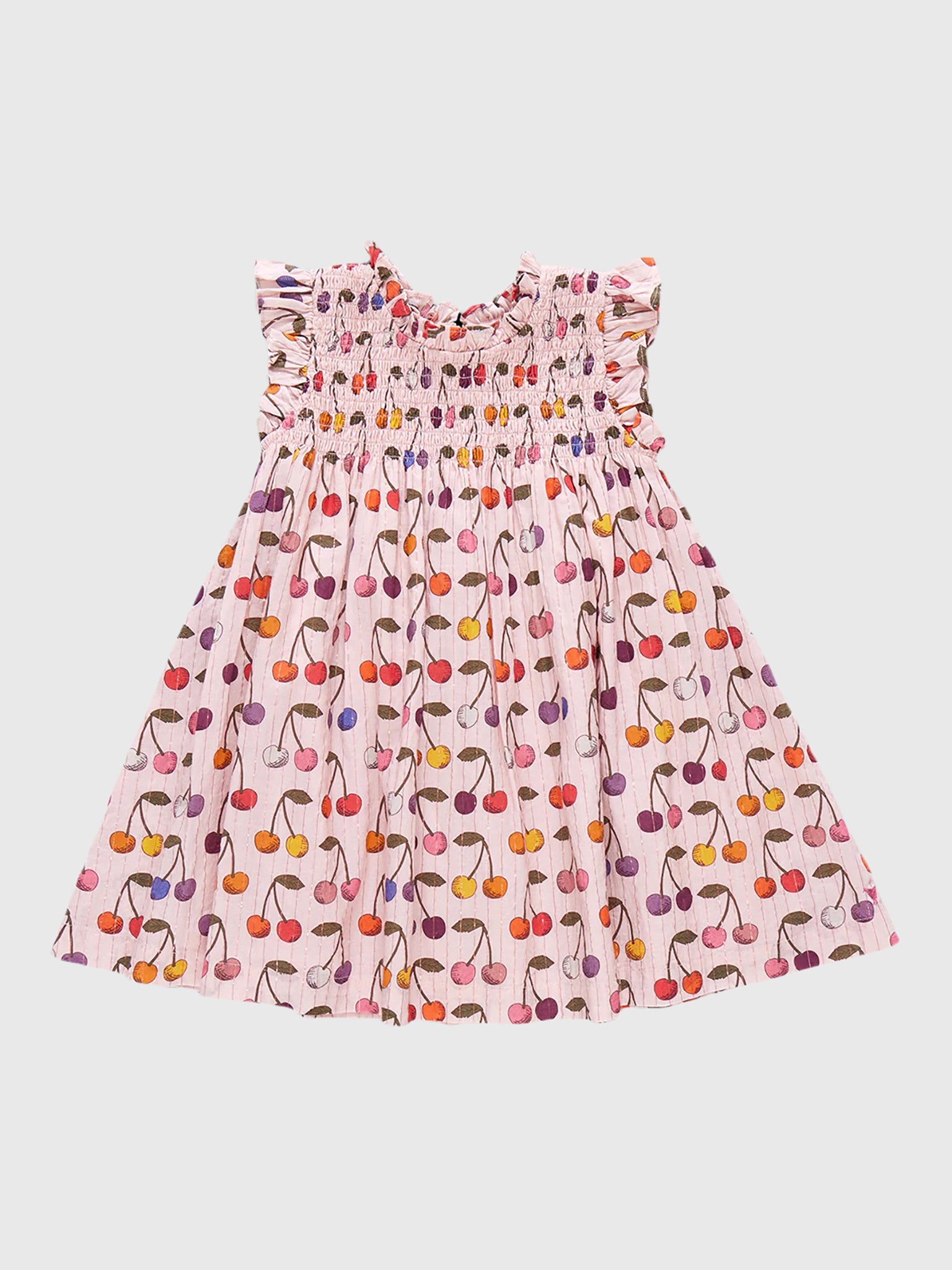 A best-selling dress made from lightweight cotton with a custom cherry print and smocked detailing.