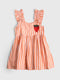 Bring on the sunshine in this orange and pink striped dress. It's made from lightweight yarn-dyed cotton and features a strawberry appliqué and comfortable ruched straps.