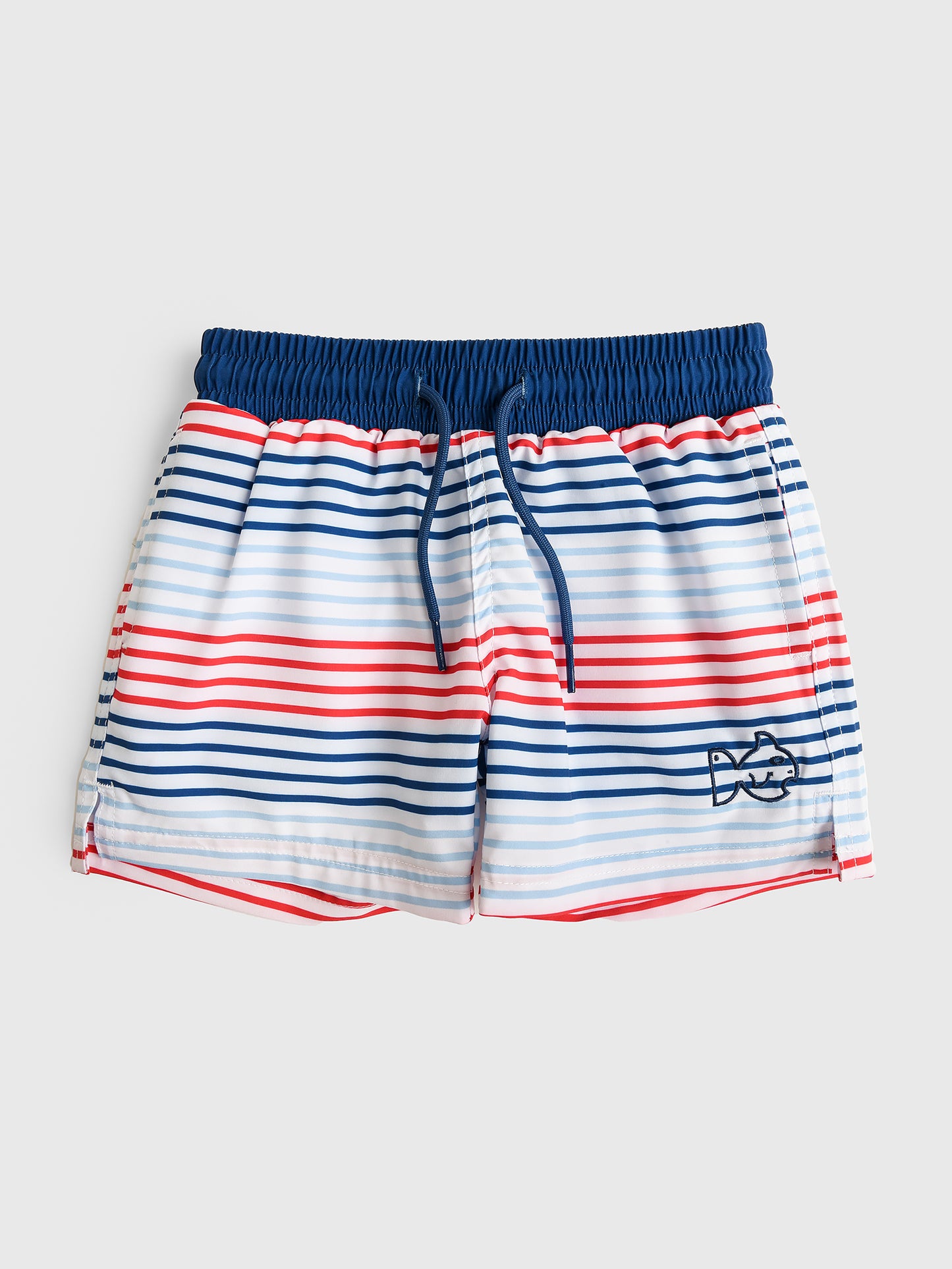 A lightweight swim trunk made from fast-drying fabric with an anti-chafing boxer brief liner.