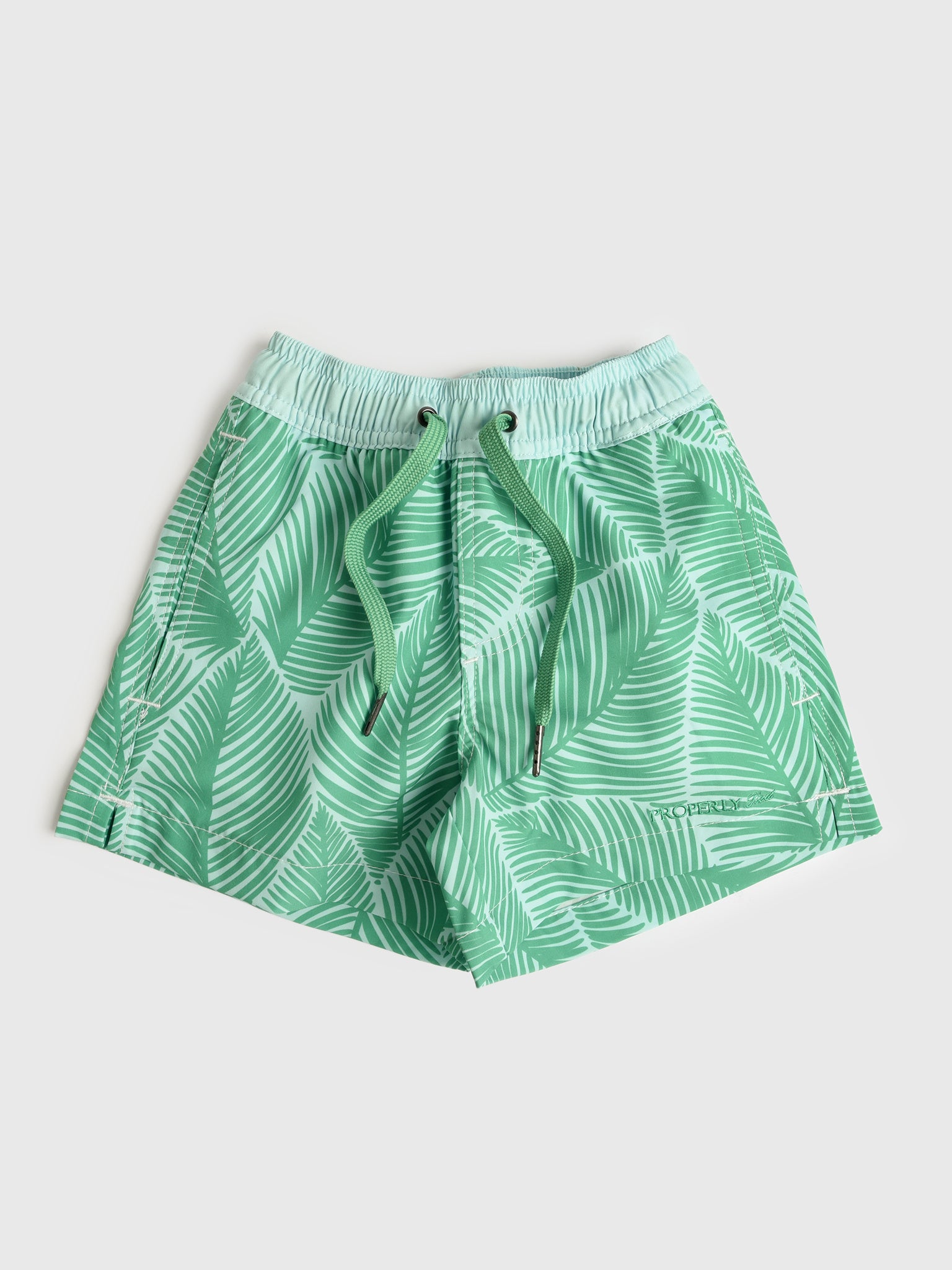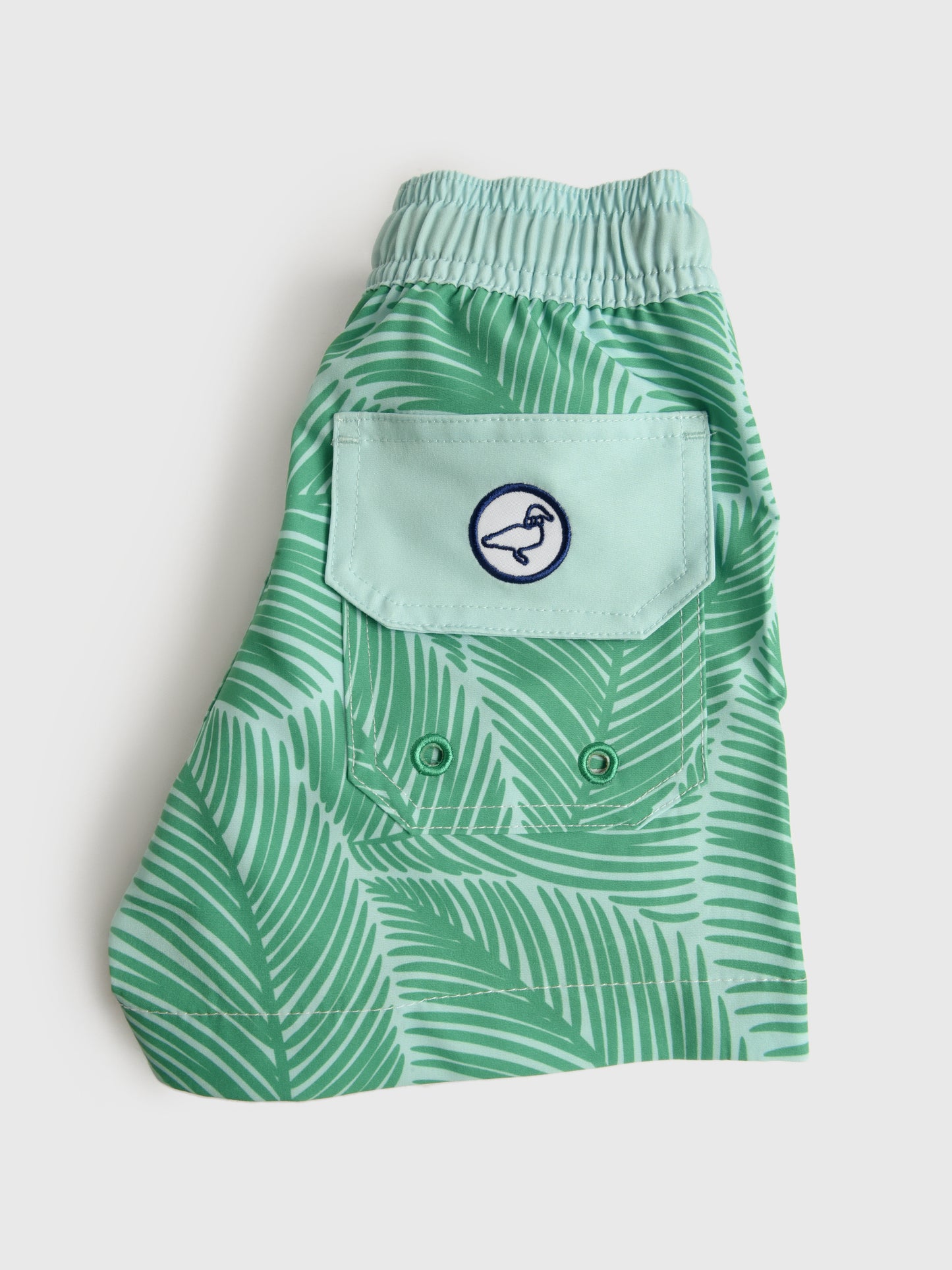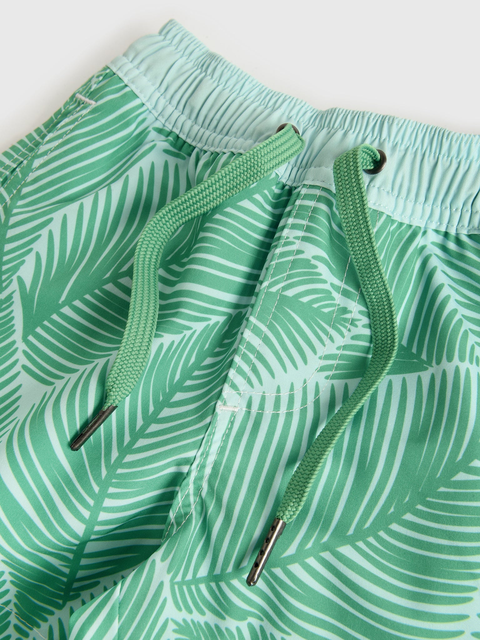 This vibrant swim trunk is made from comfortable quick-drying fabric and features a tropical-inspired print.