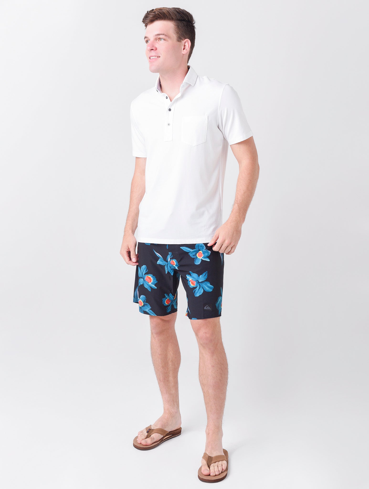 - Model is wearing size Medium boardshort.