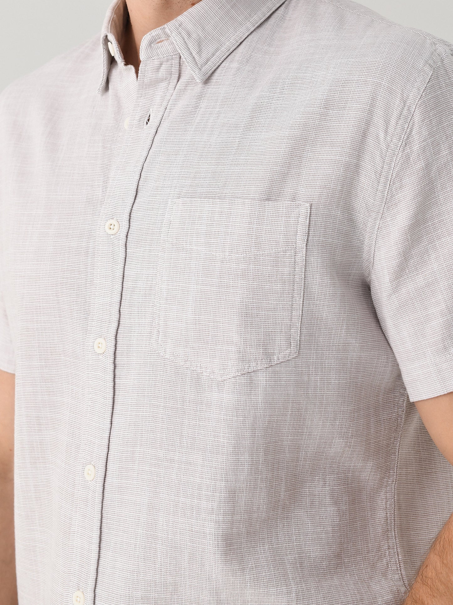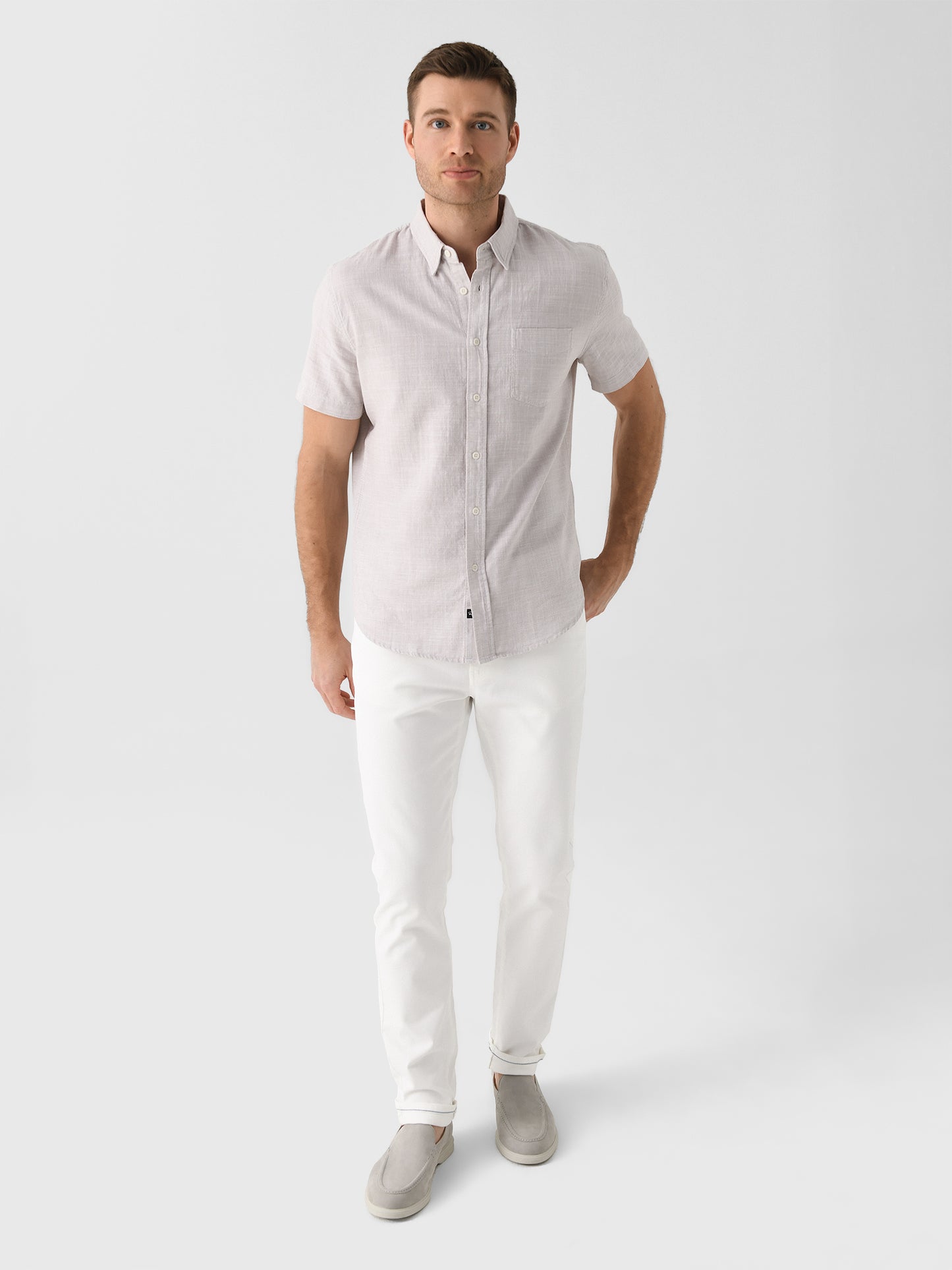 This short-sleeve shirt is crafted from textured, breathable cotton slub. It features traditional shirting details and a streamlined fit.