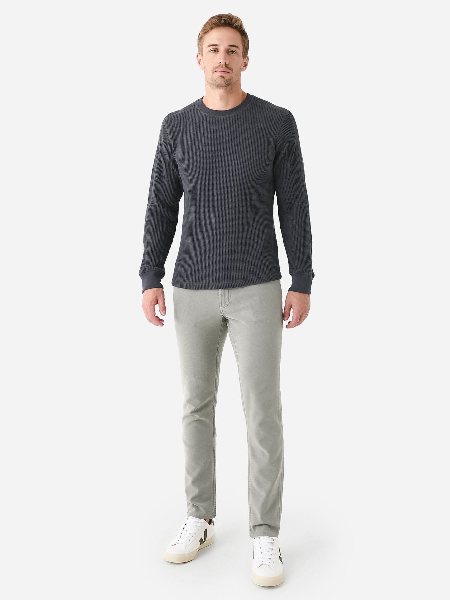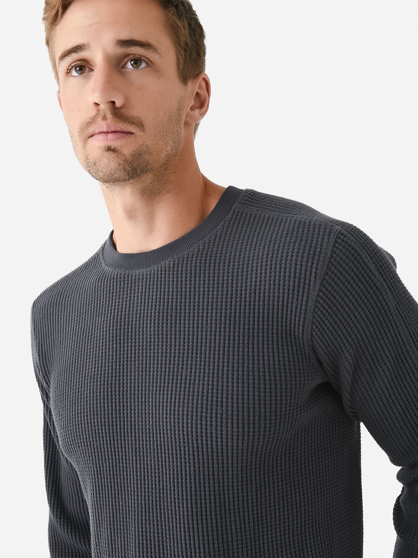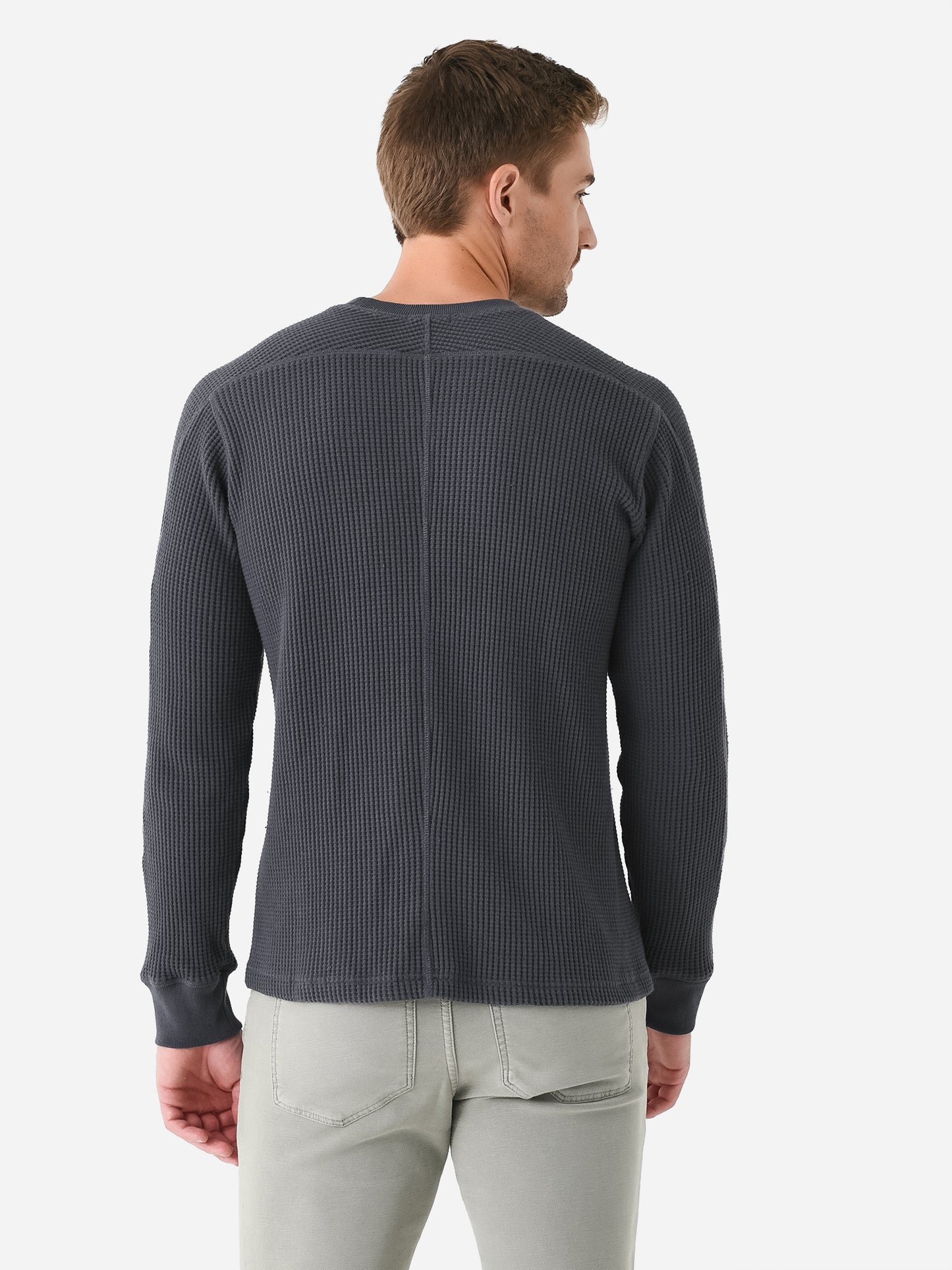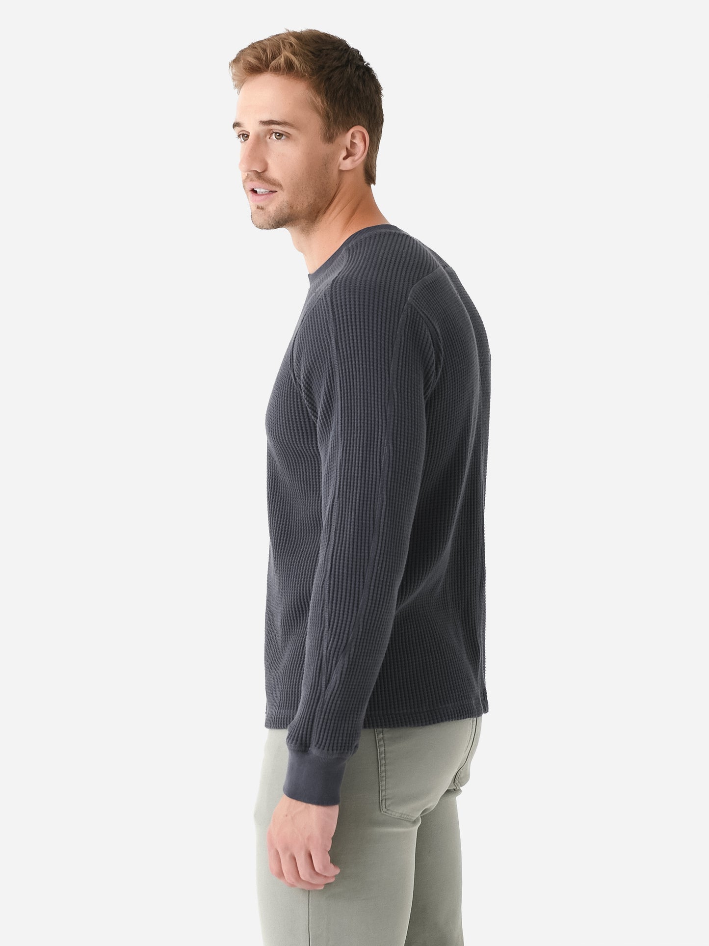 Mid-weight waffle knit long-sleeve thermal tee.