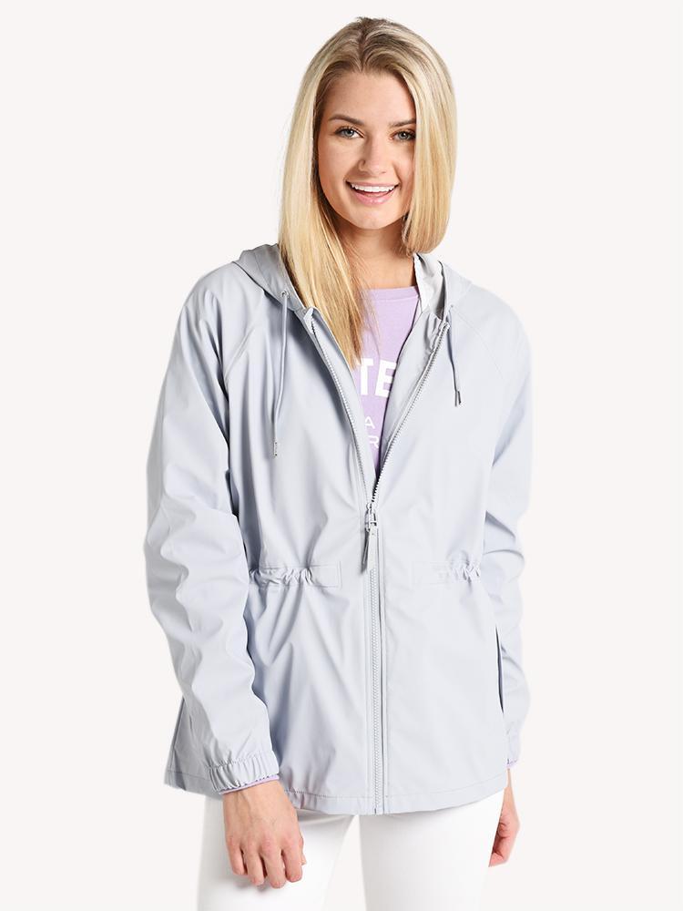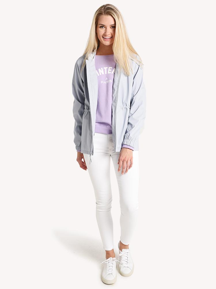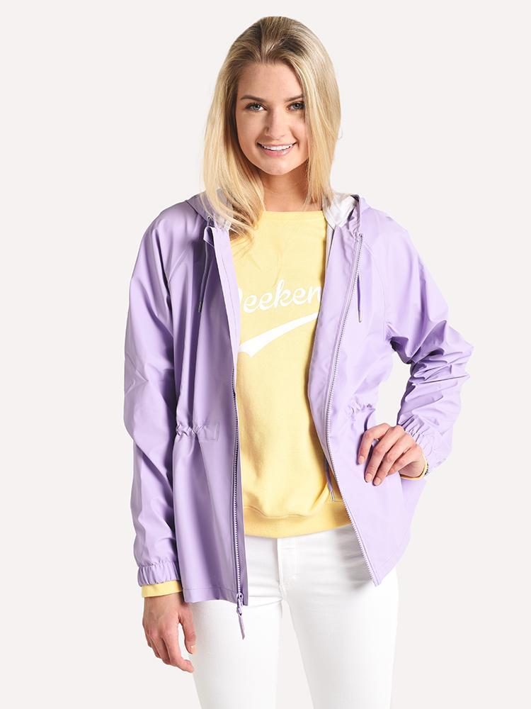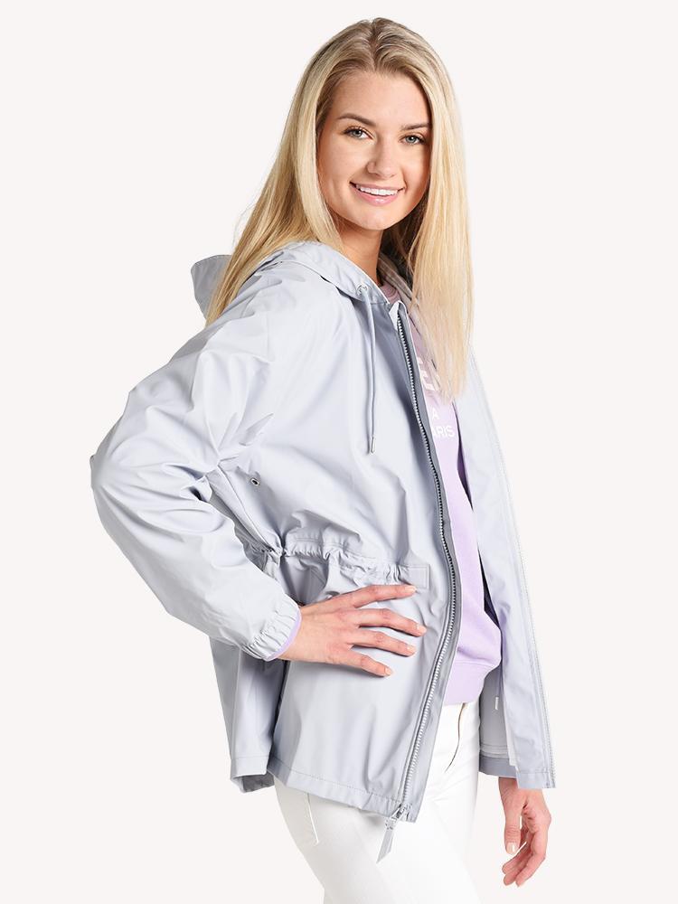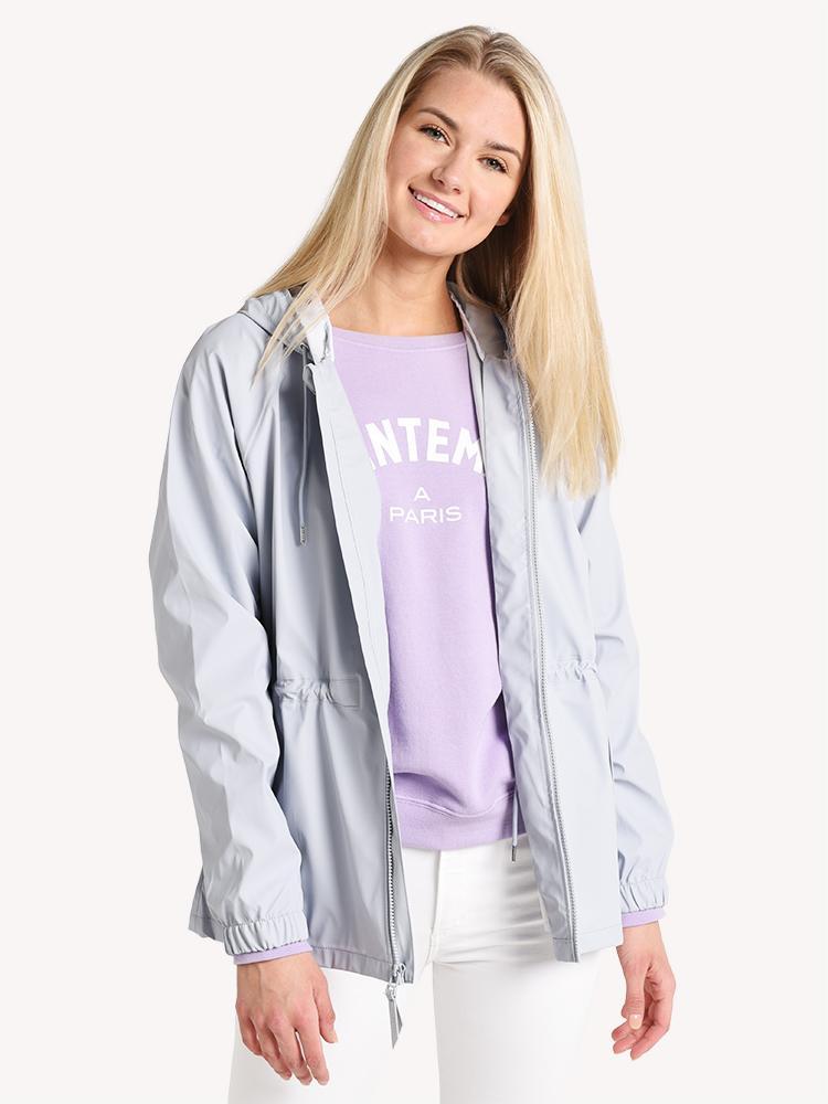 STYLE # 1268 W Jacket is a sporty women s rain jacket made from a matte, waterproof fabric and completed with original Rains hardware, a drawstring hood and raglan sleeves. It has a straight fit with a drawstring waist, giving it a sporty yet feminine silhouette. W Jacket features ventilation airholes, a water-repellant front zipper, elastic cuffs and front pockets.