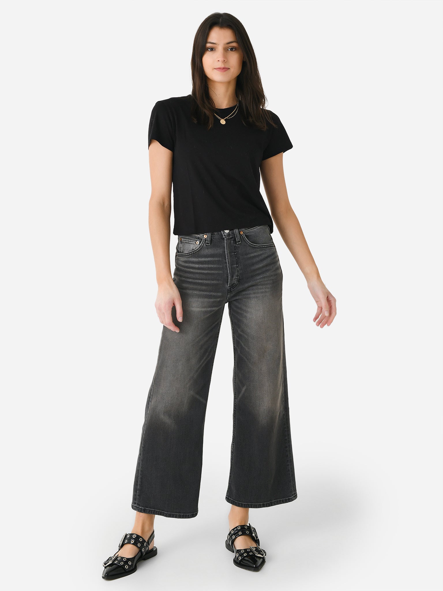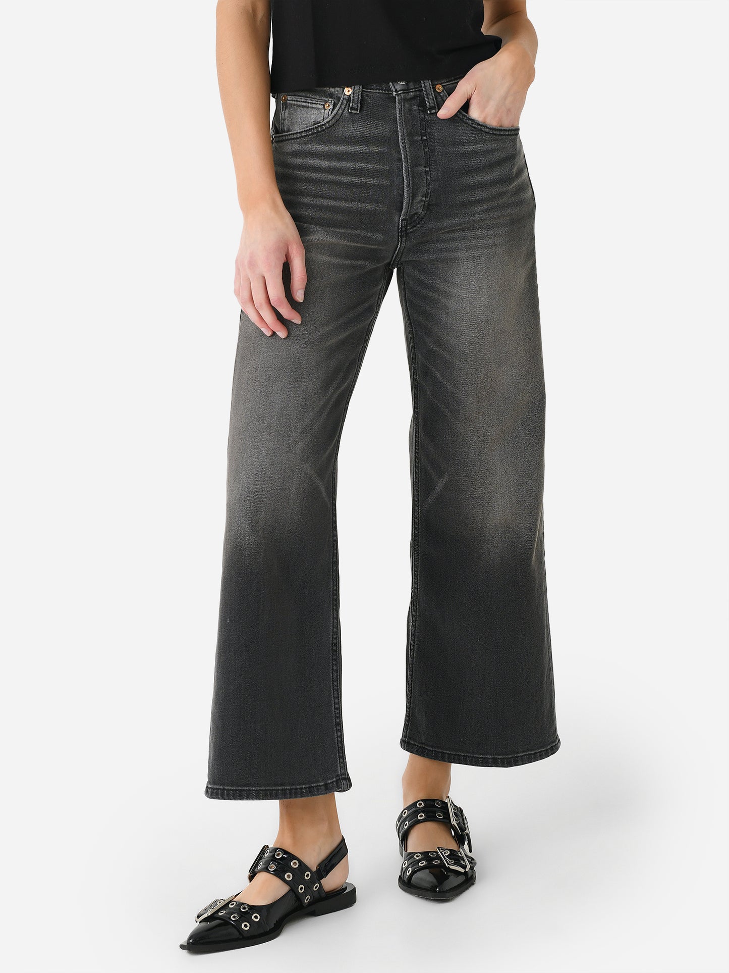 Re/Done Women's High Rise Wide Leg Crop Jean