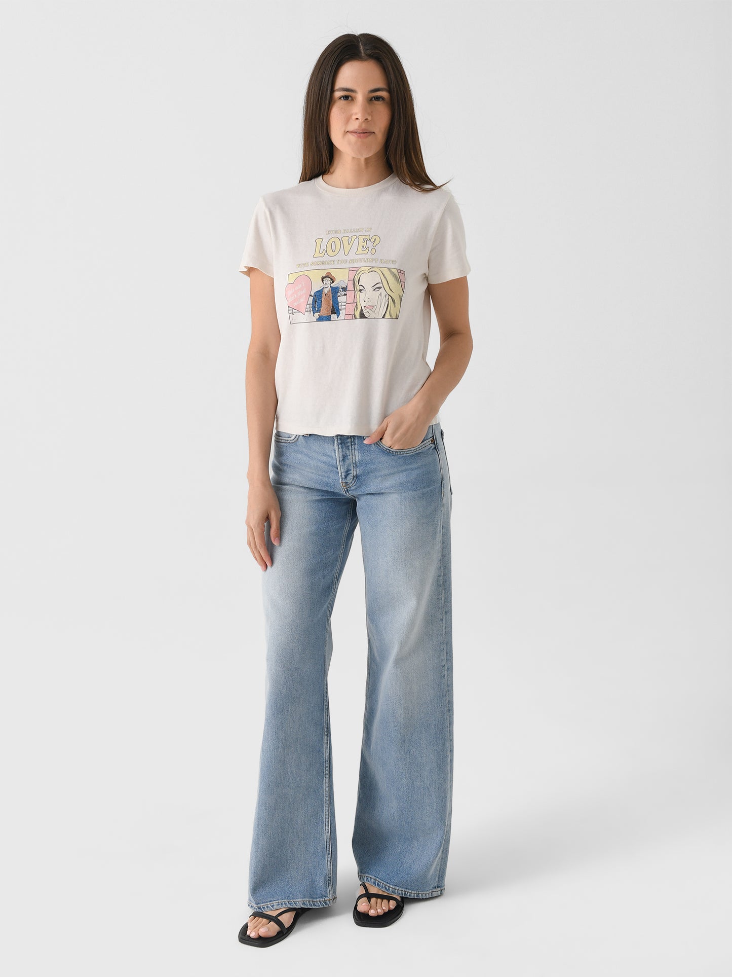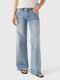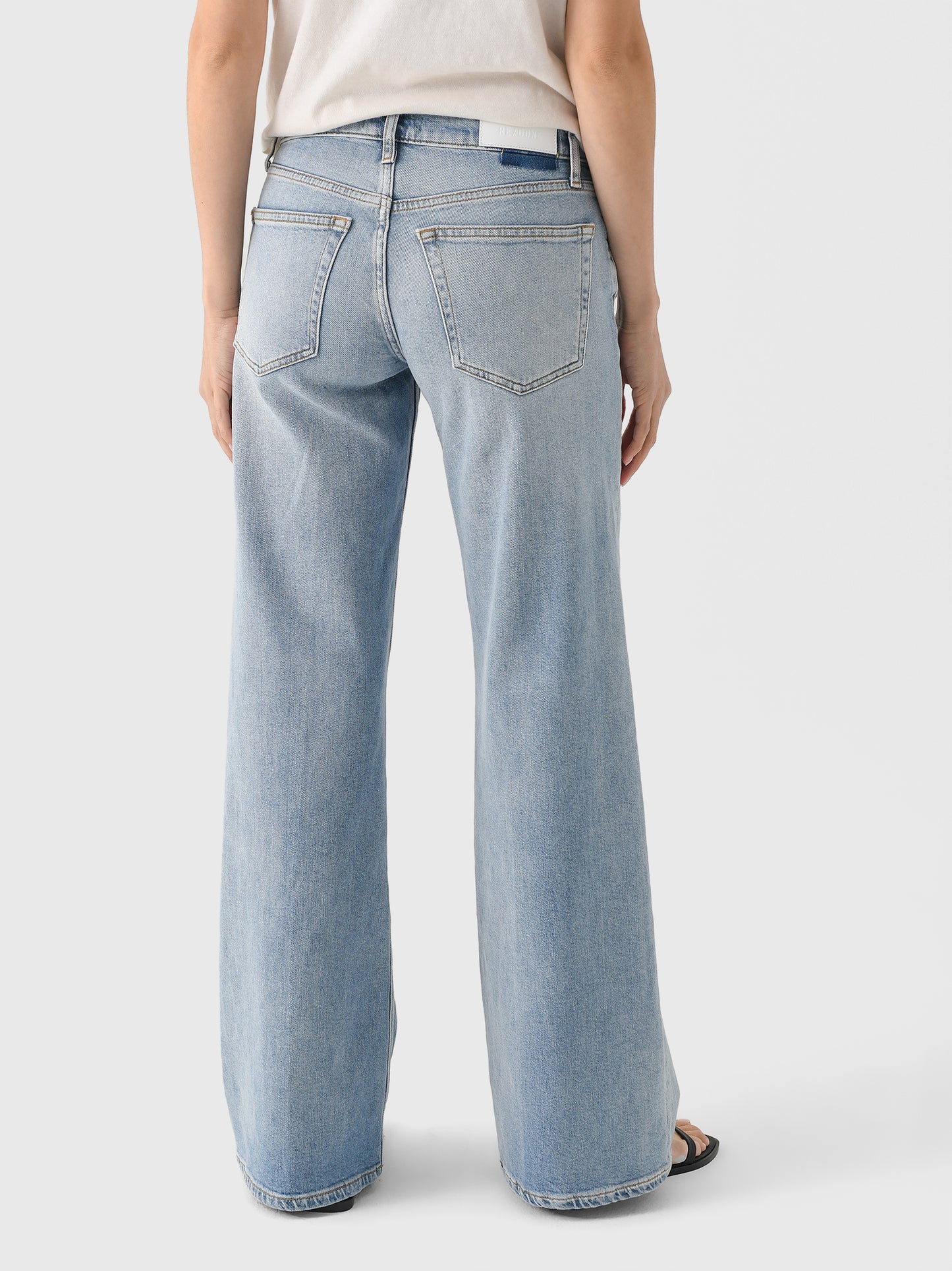 A mid-rise jean made from comfortable stretch denim with a leg-lengthening wide-leg design.