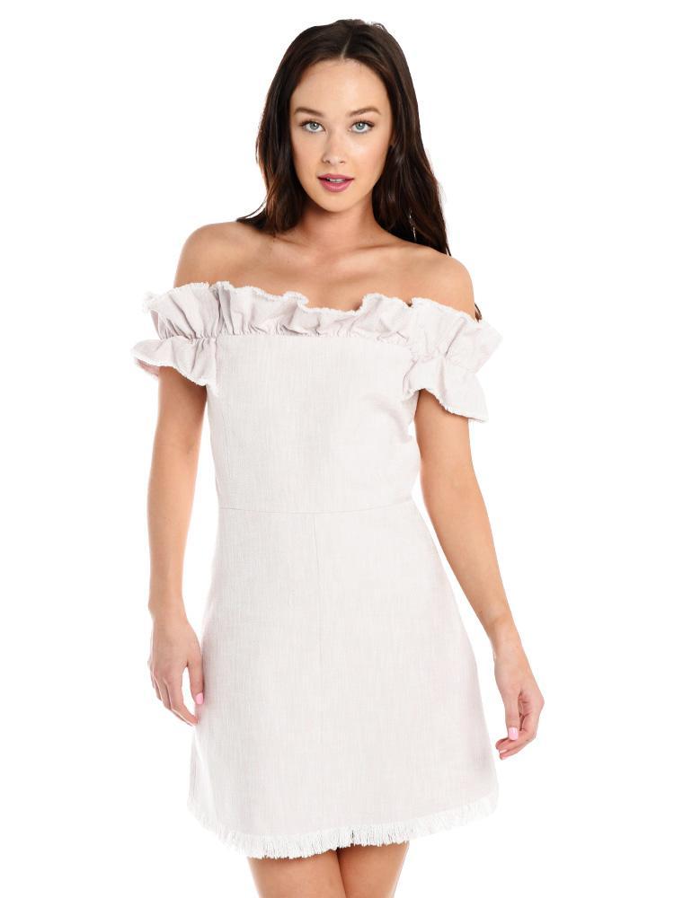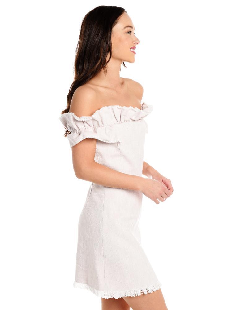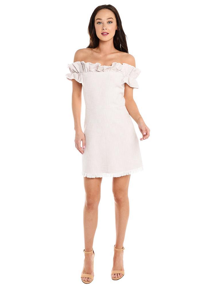 The Rebecca Taylor Off The Shoulder Slub Suiting Dress is a lady like dress ready for any occasion.