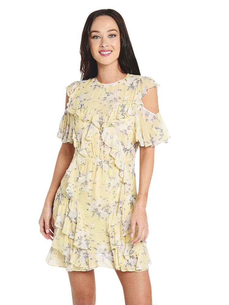 Be right on trend in the Rebecca Taylor Open Shoulder Lemon Dress.
