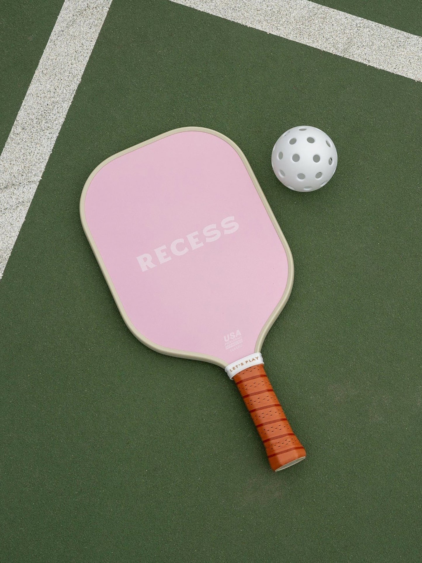 This pickleball paddle offers a durable fiberglass surface and a honeycomb polypropylene core, perfect for a spontaneous game with friends under the sun.