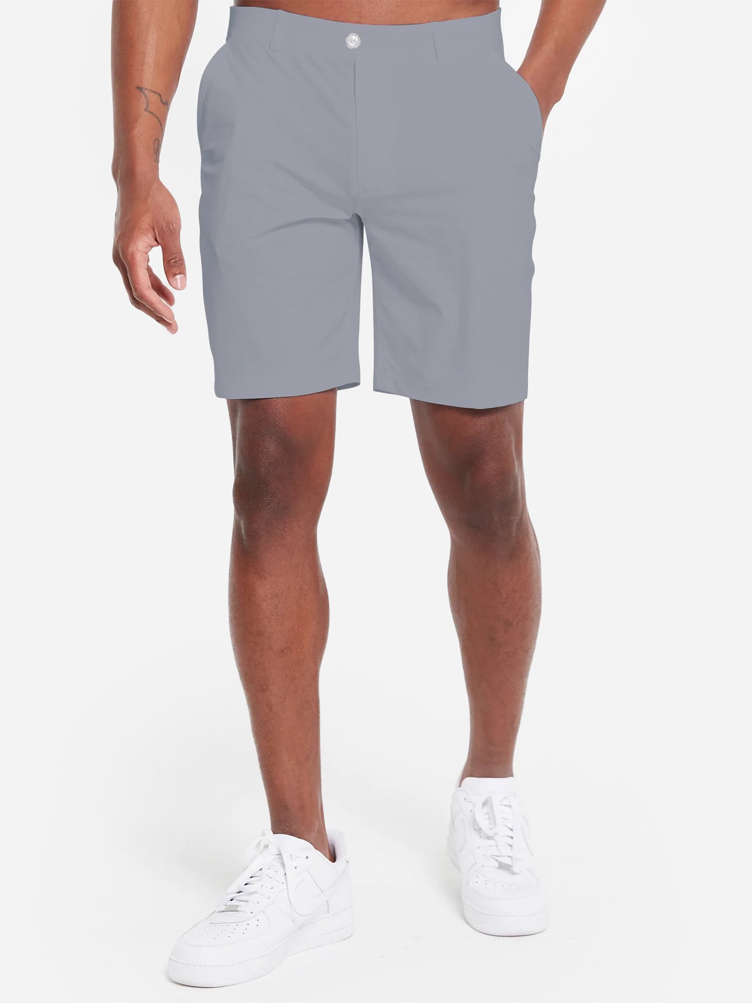 Golf short offering pull-on wearability in a high-performance fabrication with a longer inseam.