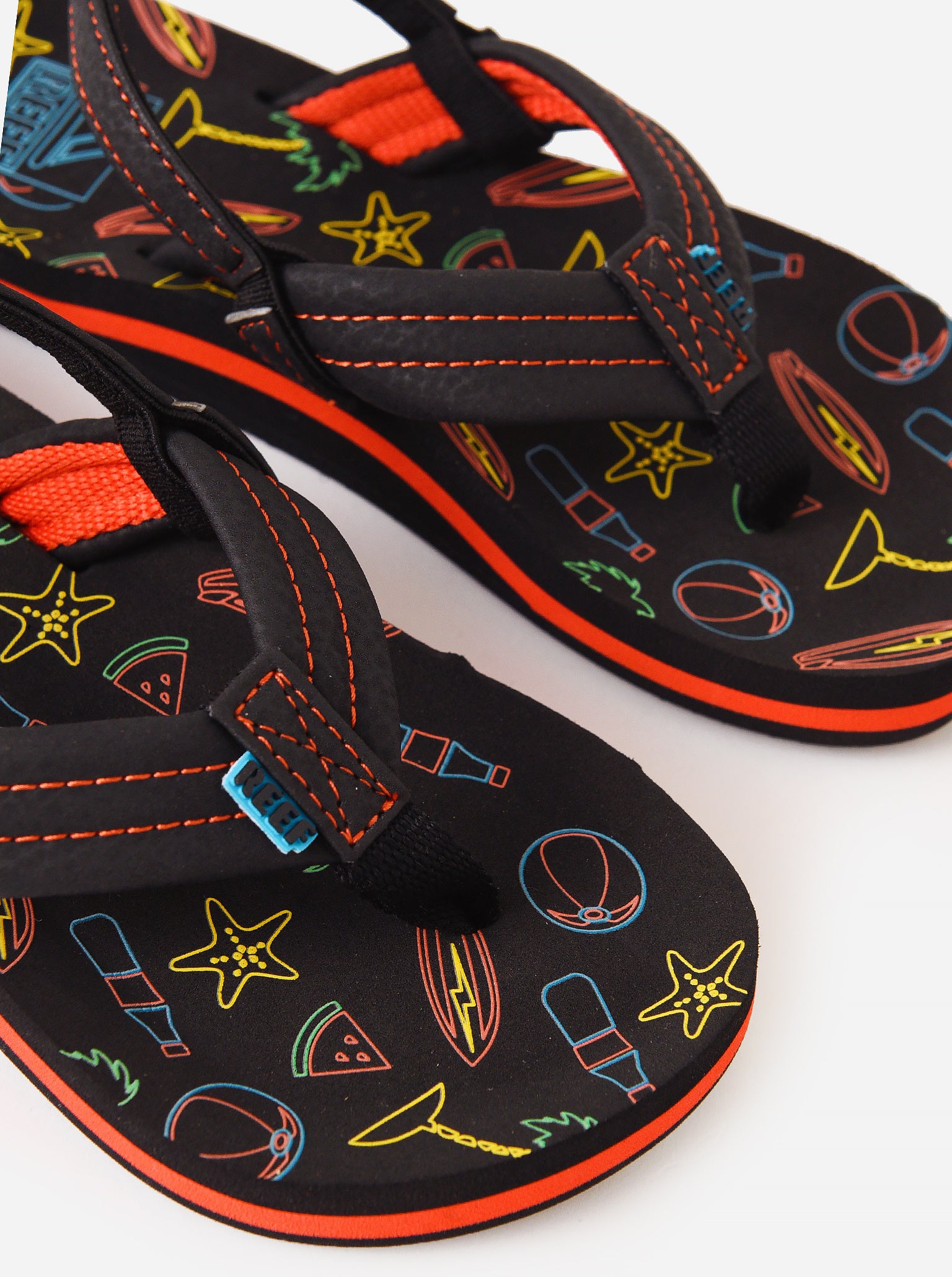 Fun glow-in-the-dark flip flop with a toe and heel strap for extra support.
