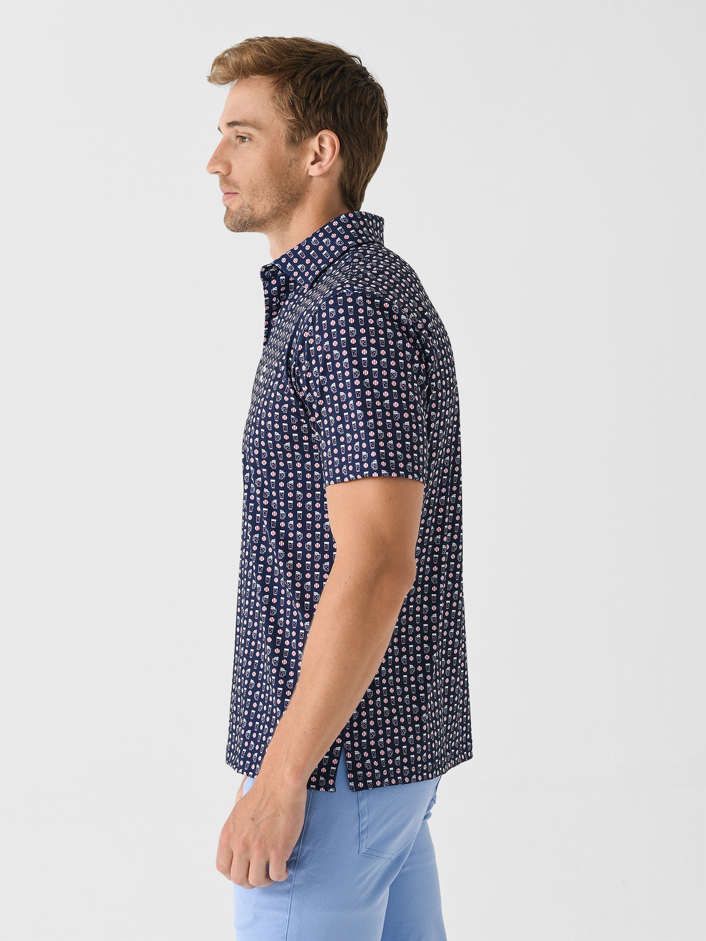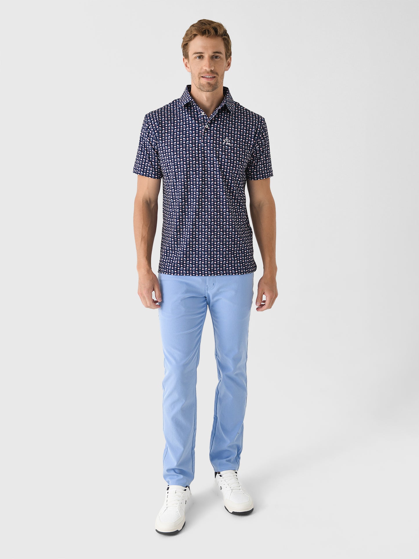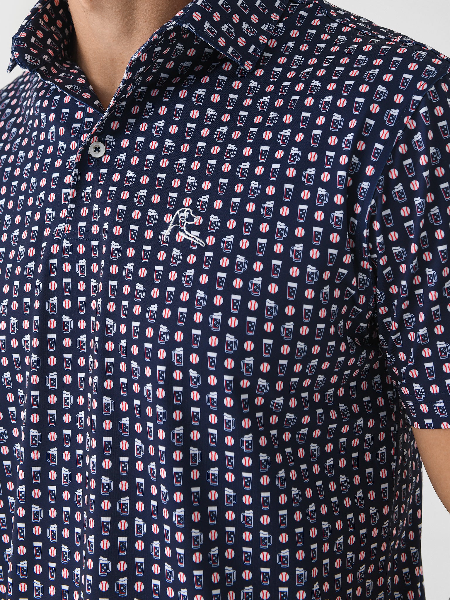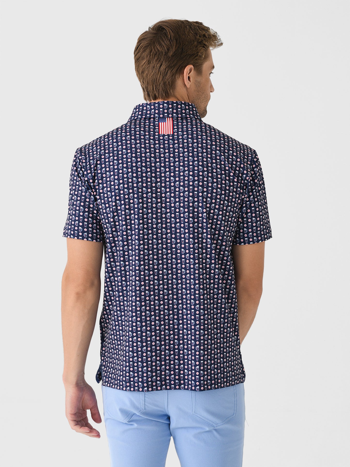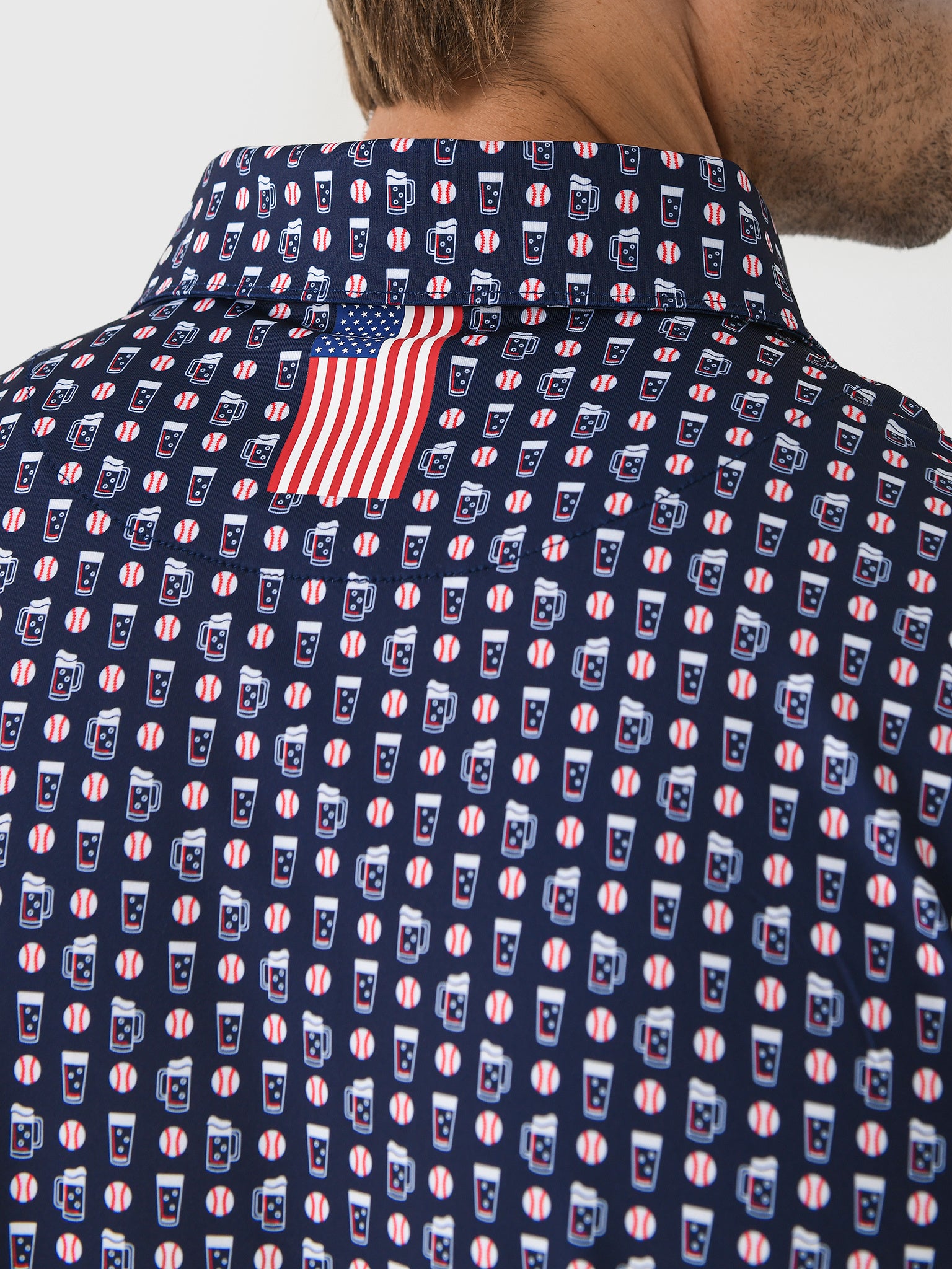 This polo is engineered for peak performance. Its high-quality fabric boasts moisture-wicking and four-way stretch technology, ensuring breathability and maximum freedom of movement. The baseball-inspired print is perfect for those who enjoy America's favorite pastime.