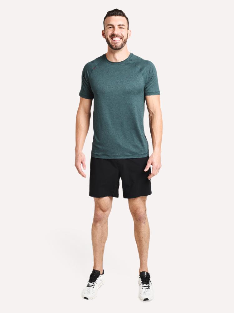 - Styled with Rhone short style # 100207 and ON trainers style # MENS CLOUD X. model is wearing size Medium tee and short.