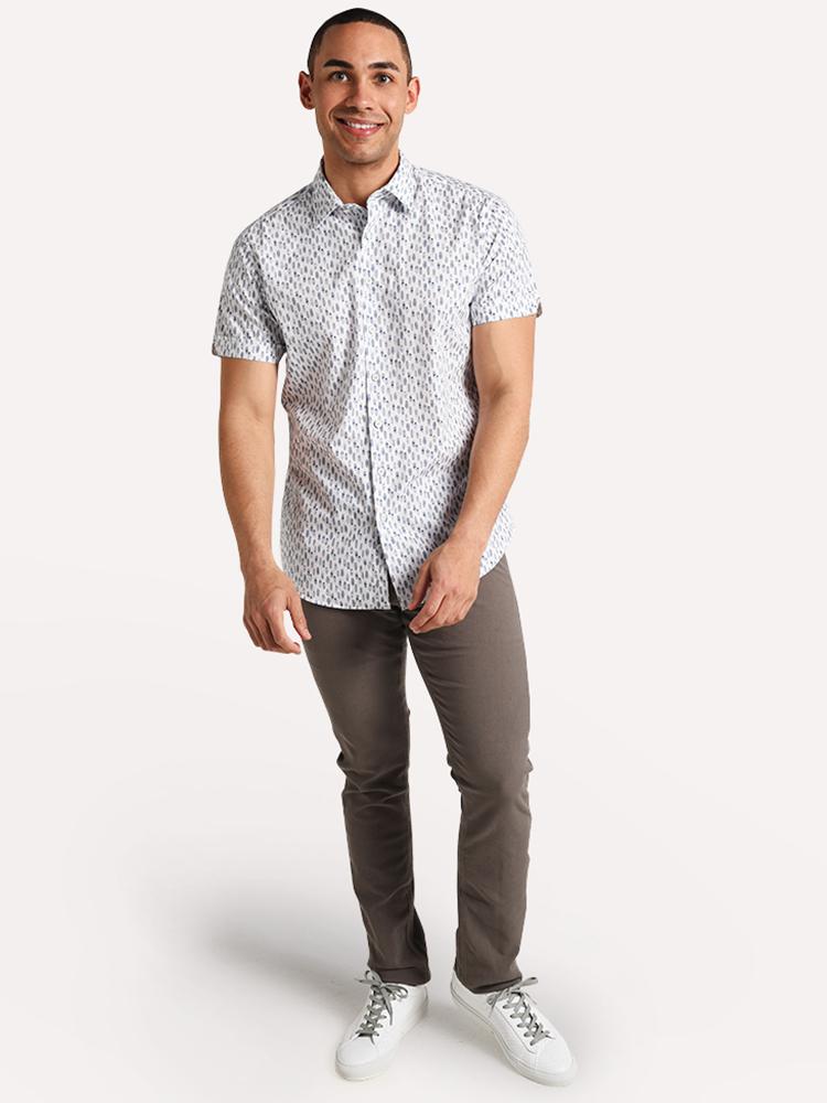- Styled with Rodd and Gunn jean Style # VJ0367 and Koio sneakers Style # CAGP. Model is wearing size medium shirt and size 32 pant.