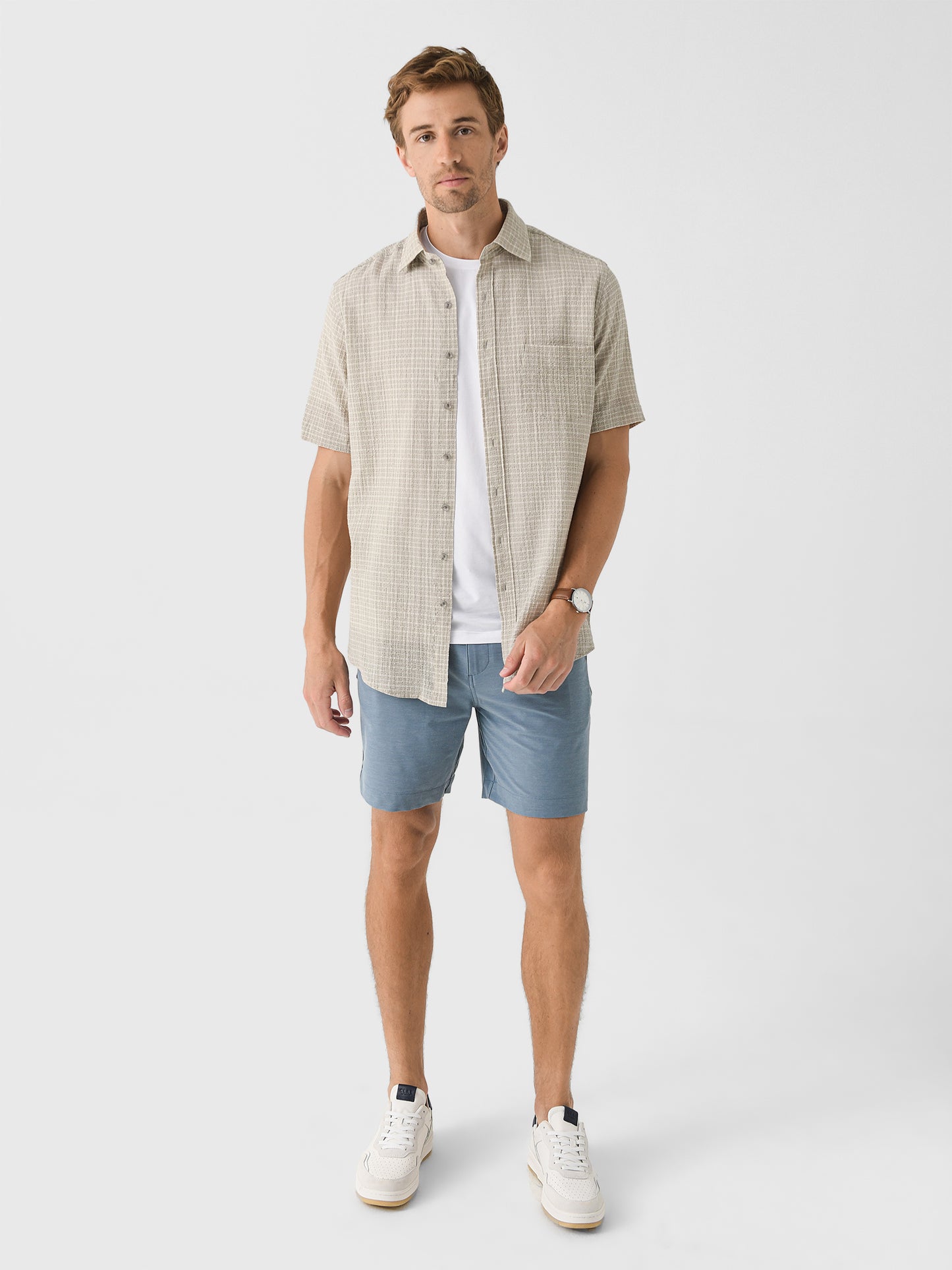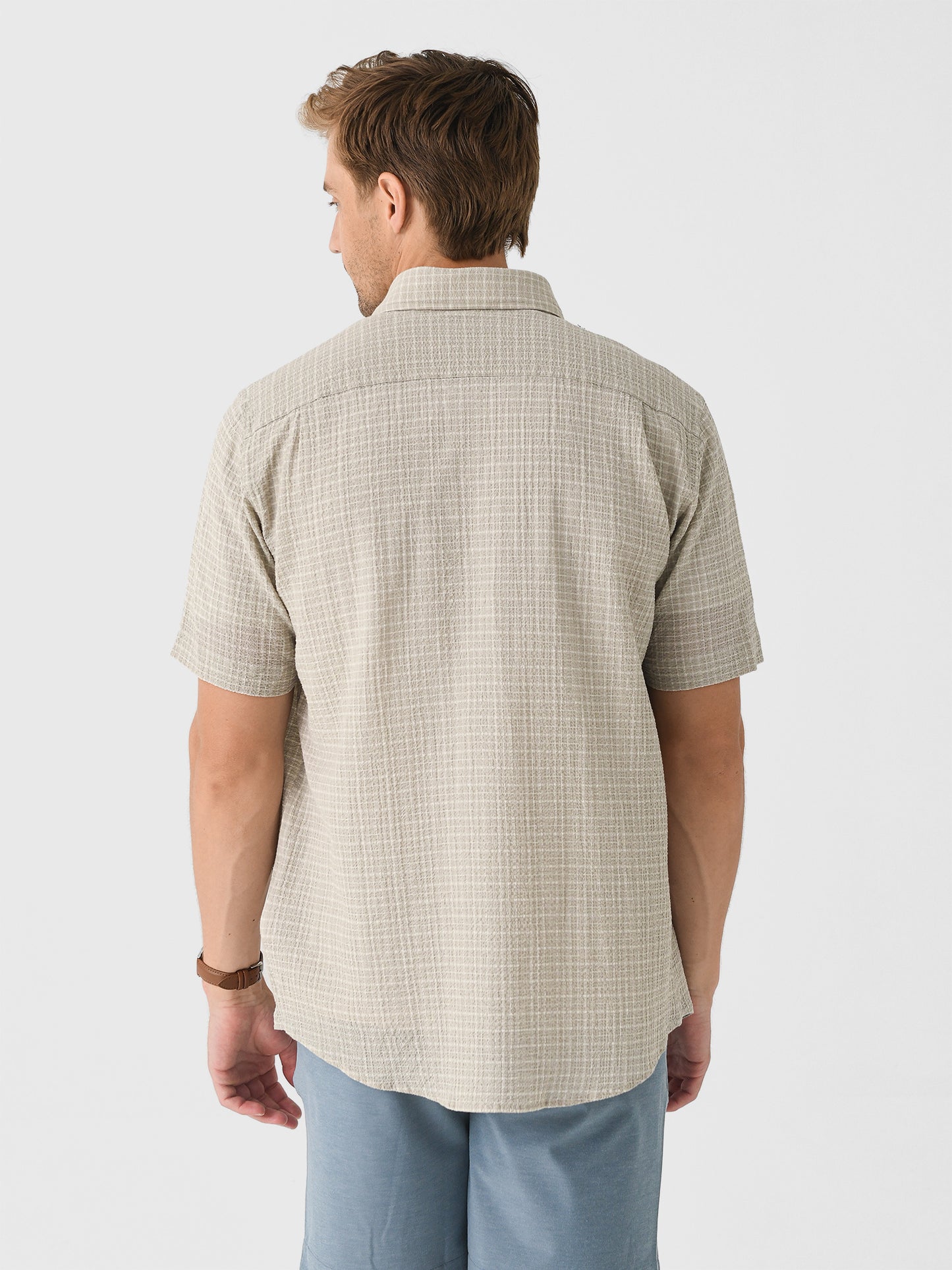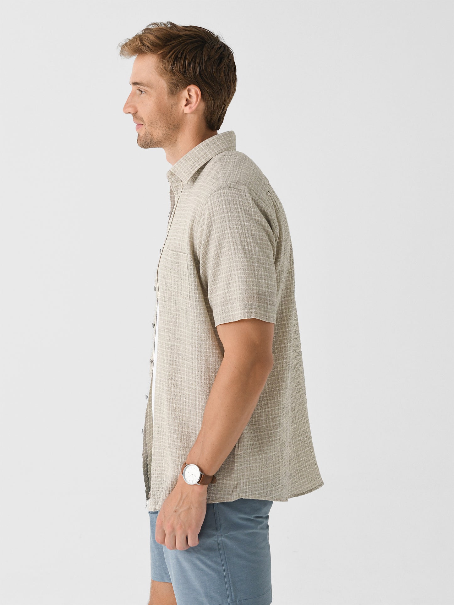 Keep cool and comfortable with this short-sleeve shirt. Crafted from an ultra-light, breathable seersucker fabric with a subtle check design, it's perfect for warm days.