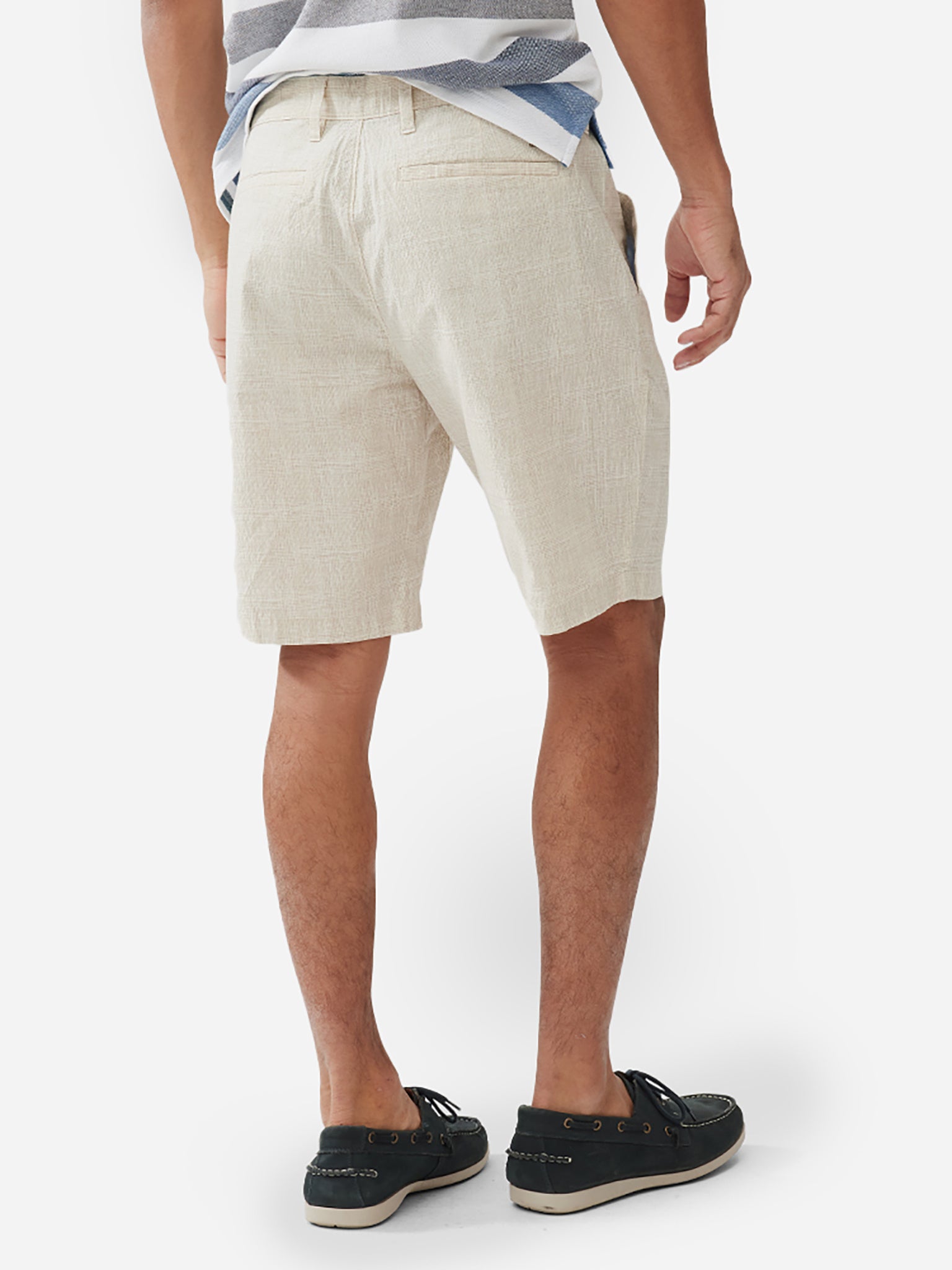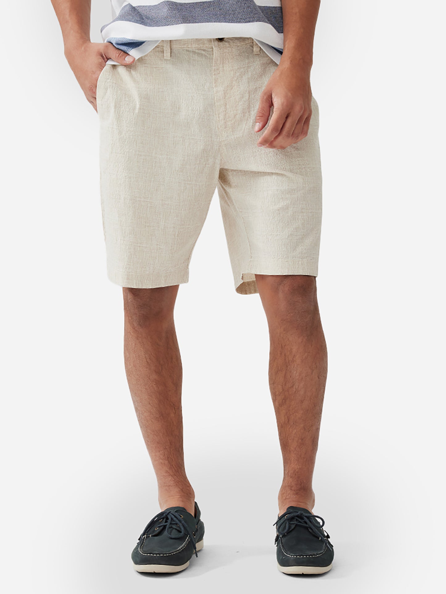 A lightweight chino-style short constructed from breathable seersucker fabric.